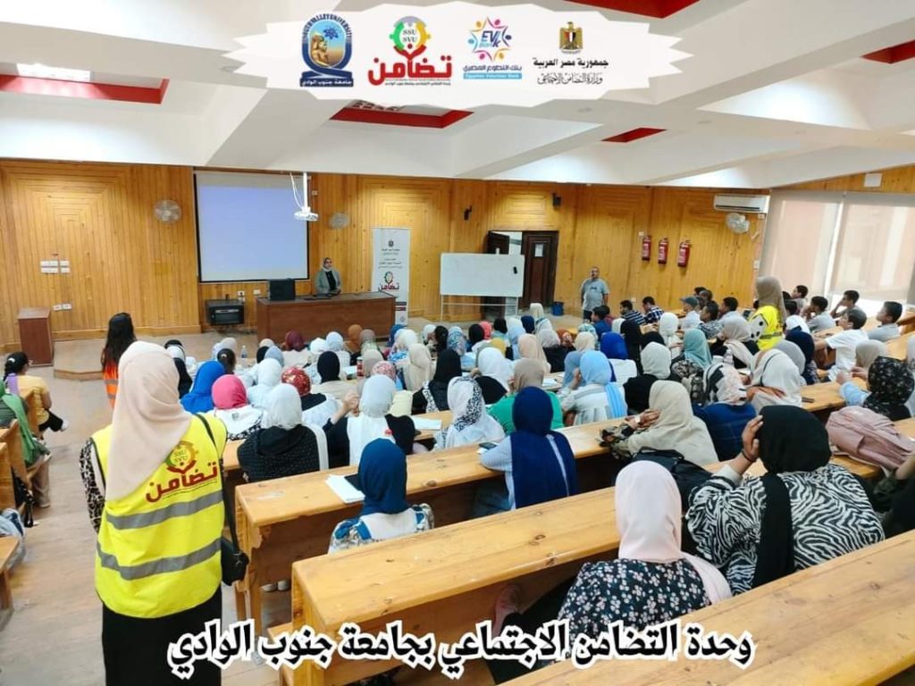نظمت وحدة التضامن الاجتماعي بجامعة جنوب الوادي مبادرة بالتضامن نبني وطن داخل مختلف الكليات بالجامعة