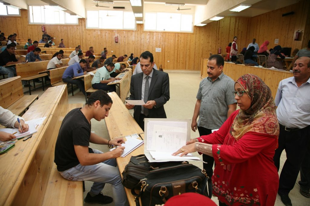 وقام الدكتور محمد ابو الفضل بدران نائب رئيس الجامعة لشئون التعليم والطلاب بجولة تفقدية لأعمال الامتحانات بكليات الآداب والتربية والحقوق والاثار والاعلام وتكنولوجيا الاتصال والزراعة والتمريض ، واطمان على سير الامتحانات وشدد على ضرورة توفير وسائل الراحة للطلاب وطالب بعدم حمل الحقائب للطالبات داخل اللجان والتأكد من عدم وجود السماعات للطالبات وضرورة عدم اصطحاب المحمول داخل اللجان ونوه نائب رئيس الجامعة على وضع التعليمات الخاصة بالامتحانات في لوحة الاعلانات وامام اللجان بالكلية رافقه خلال الجولة عمداء الكليات .