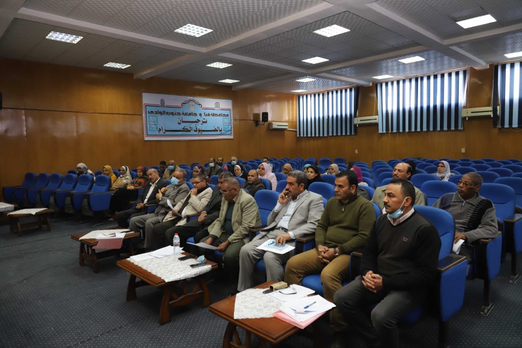 شهد الدكتور يوسف غرباوي رئيس جامعة جنوب الوادي ورشة عمل موازنة البرامج و مؤشرات الاداء التي اقيمت بحضور الدكتور احمد عكاوي نائب رئيس الجامعة للدراسات العليا و البحوث و عادل احمد مصطفى امين عام الجامعة و بمشاركة موظفي الوحدات الحسابية بكليات الجامعة و الادارة المركزية