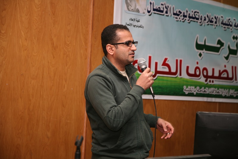 وتحدث المخرج والإعلامي عن تاريخ التصوير الوثائقي والتطوير الذى شهده التصوير السينمائي واهمية مواكبة التطوير في التصوير وتوجيه الصورة للجمهور وناقش كيفية استخراج فيلم وثائقي هادف مشيرا الى دور الاعلام في ابراز القصص الواقعية من المجتمع بمعالجة سنيمائية تعتمد على الكاميرا التصويرية الوثائقية وقام المخرج بعرض فيلم شيماء الذى قام بتصويره واخراجه كنموذج للفيلم الوثائقي .