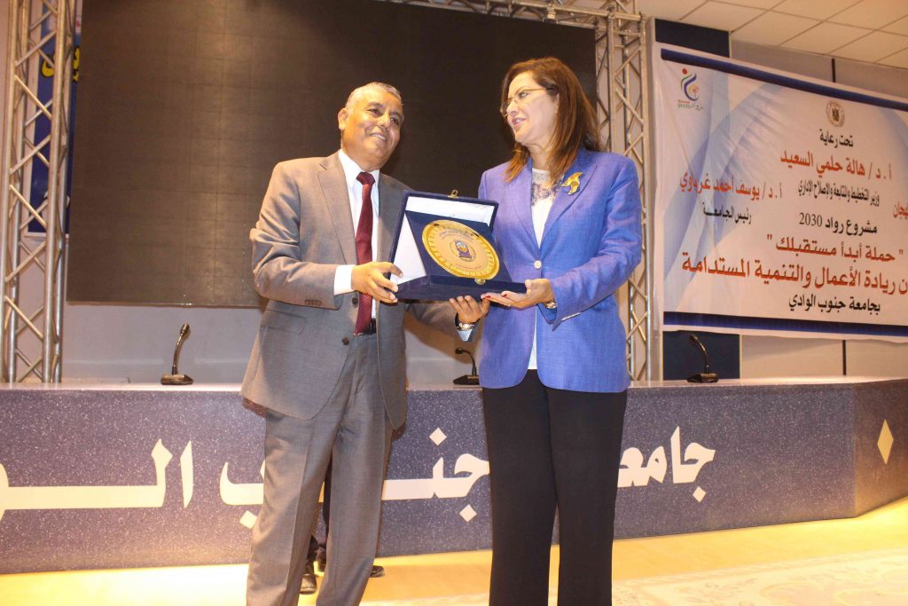 وزيرة التخطيط تشارك فى ندوة حول ريادة الاعمال بجامعة جنوب الوادى