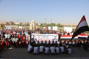وتقدم رئيس الجامعة مسيرة حاشدة من أمام مبنى رئاسة الجامعة بمشاركة منسوبي الجامعة