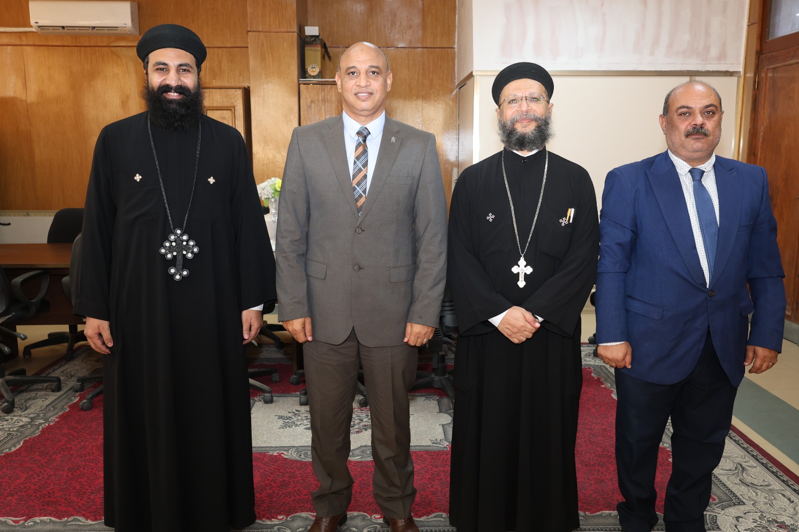 من جانبهم، أعرب وفد المطرانية عن تقديرهم للدكتور أحمد عكاوي رئيس الجامعة ولقياداتها على ما يقدمونه من جهود لخدمة أبناء قنا، متمنين للدكتور أشرف موسى التوفيق والسداد في مهام عمله الجديد.