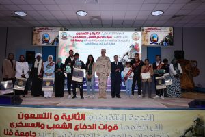 اختتمت الندوة بتكريم عدد من أسر الشهداء، وذوي الهمم، و الطلاب المتفوقين، وتبادل الدروع بين رئيس جامعة قنا ، وقائد قوات الدفاع الشعبي والعسكري.