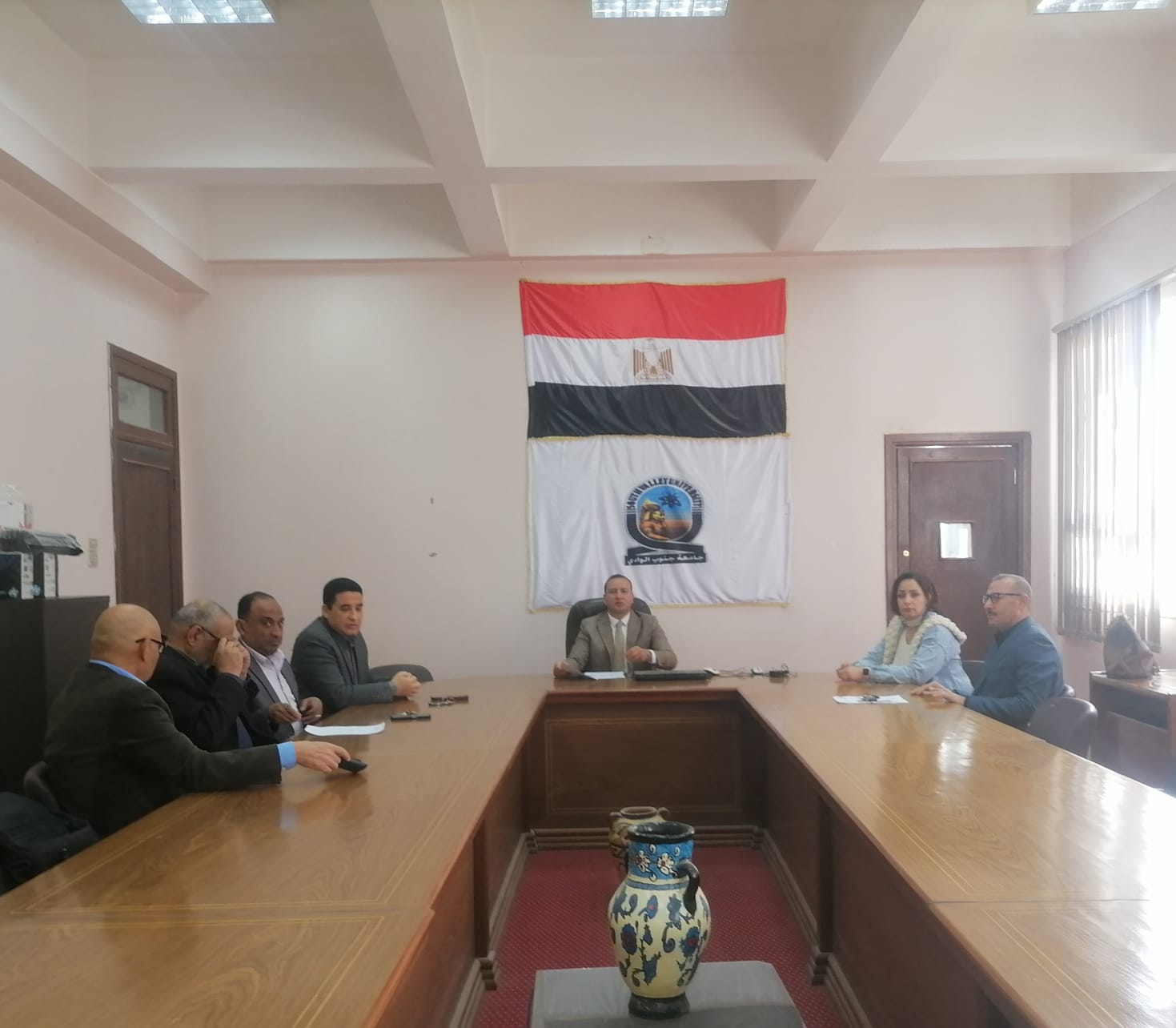 اجتمع مجلس كلية الآثار برئاسة السيد أ. د. عصام حشمت محمد عميد الكلية والسادة أ. د. وكلاء الكلية والسادة أ. د. رؤساء الأقسام العلمية والسادة أ. د. أعضاء المجلس وذلك يوم الأحد الموافق ١٥ / ٣/ ٢٠٢٦م في تمام الساعة التاسعة والنصف صباحا