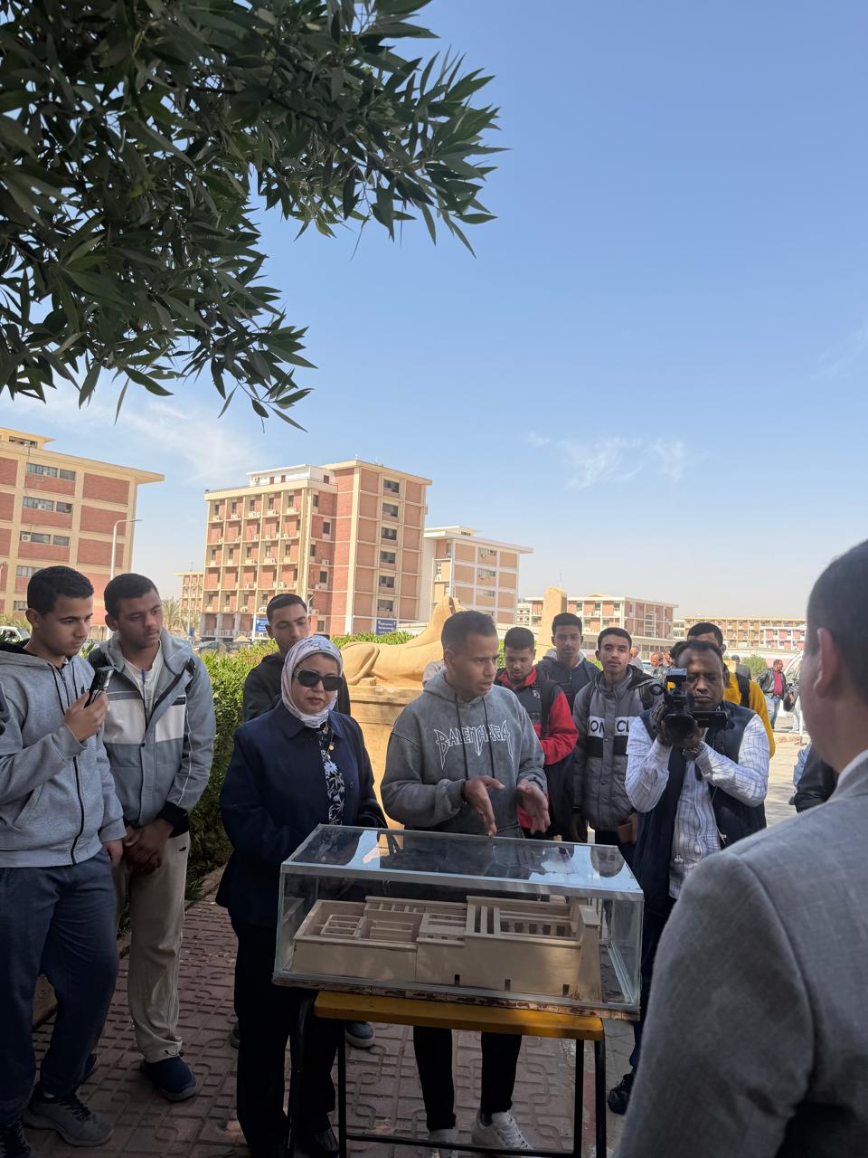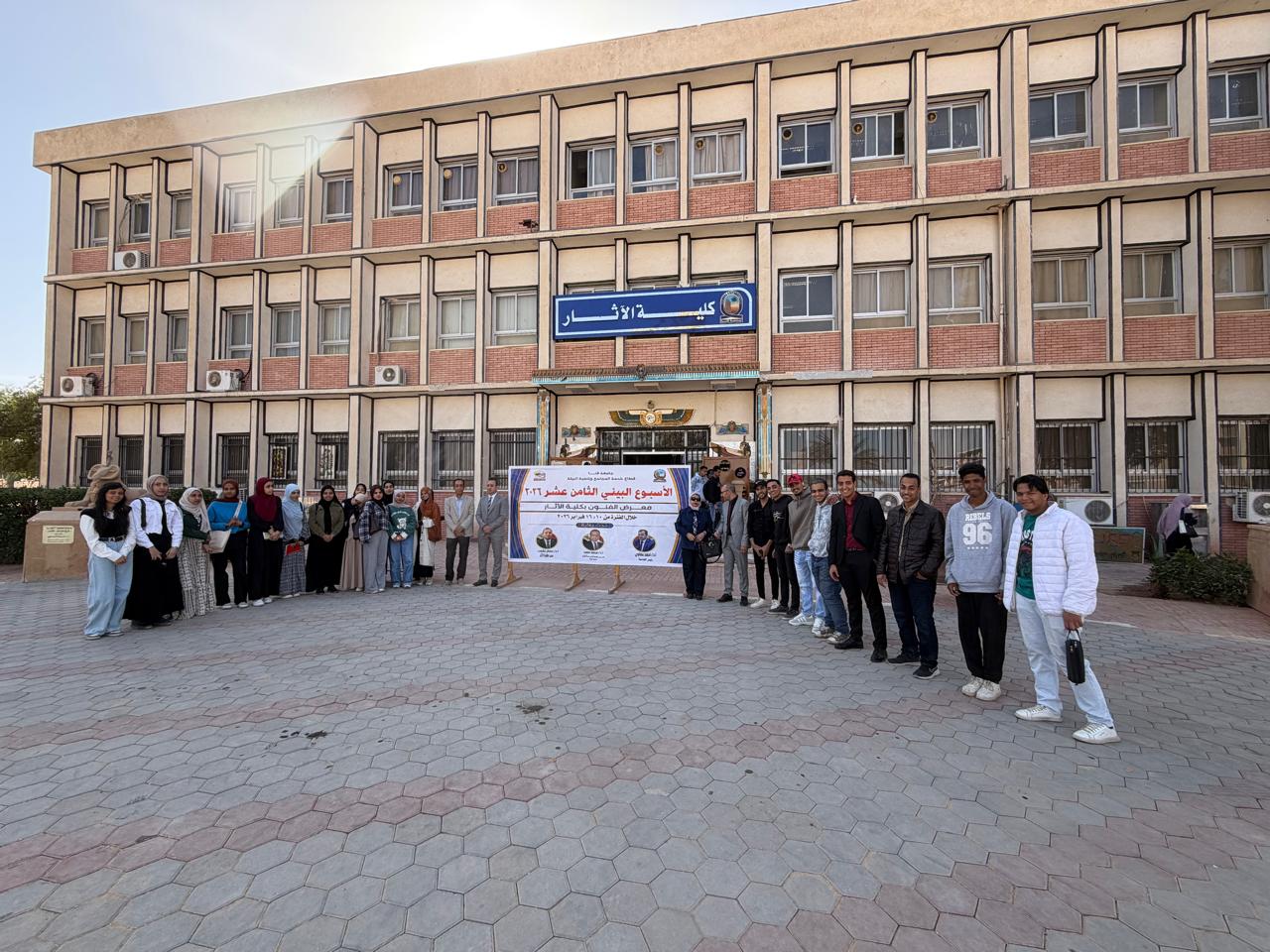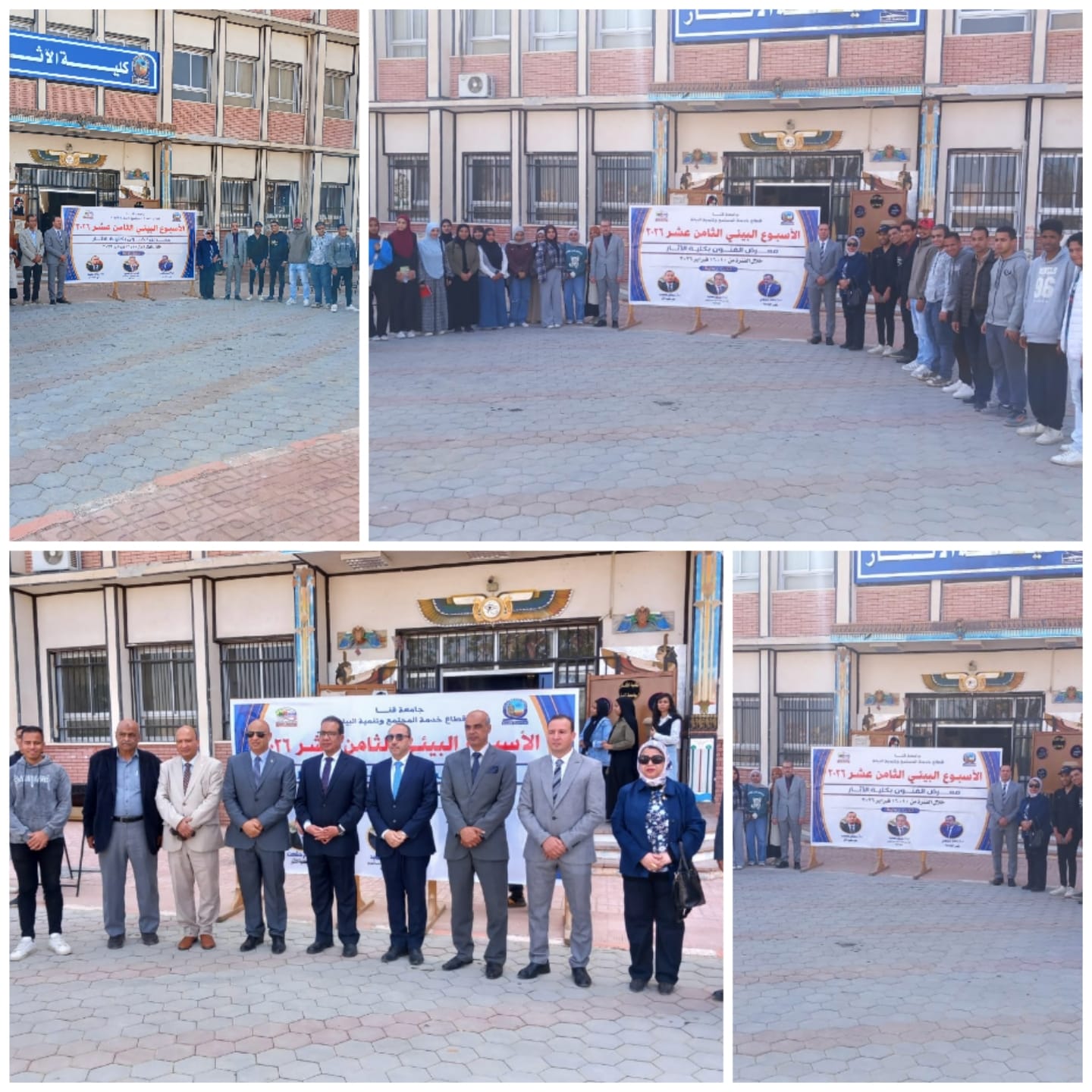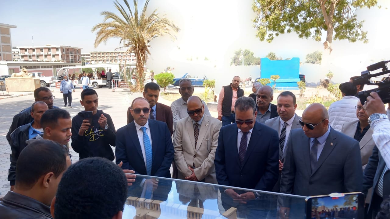برعاية كريمة من معالي أ. د. أحمد عكاوي رئيس جامعة قنا ومعالي أ. د. محمد سعيد نائب رئيس الجامعة لشئون خدمة المجتمع وتنمية البيئة وأ. د. عصام حشمت محمد عميد الكلية وبحضور معالي أ. د. محمد وائل نائب رئيس الجامعة لشئون الدراسات العليا والبحوث ومعالي أ. د. أشرف موسى نائب رئيس الجامعة لشئون التعليم والطلاب و أ. م. د. ابوبكر عبدالسلام وكيل الكلية لشئون الدراسات العليا و أ. د. فاطمة عبدالغني الأستاذ بقسم الأثار المصرية