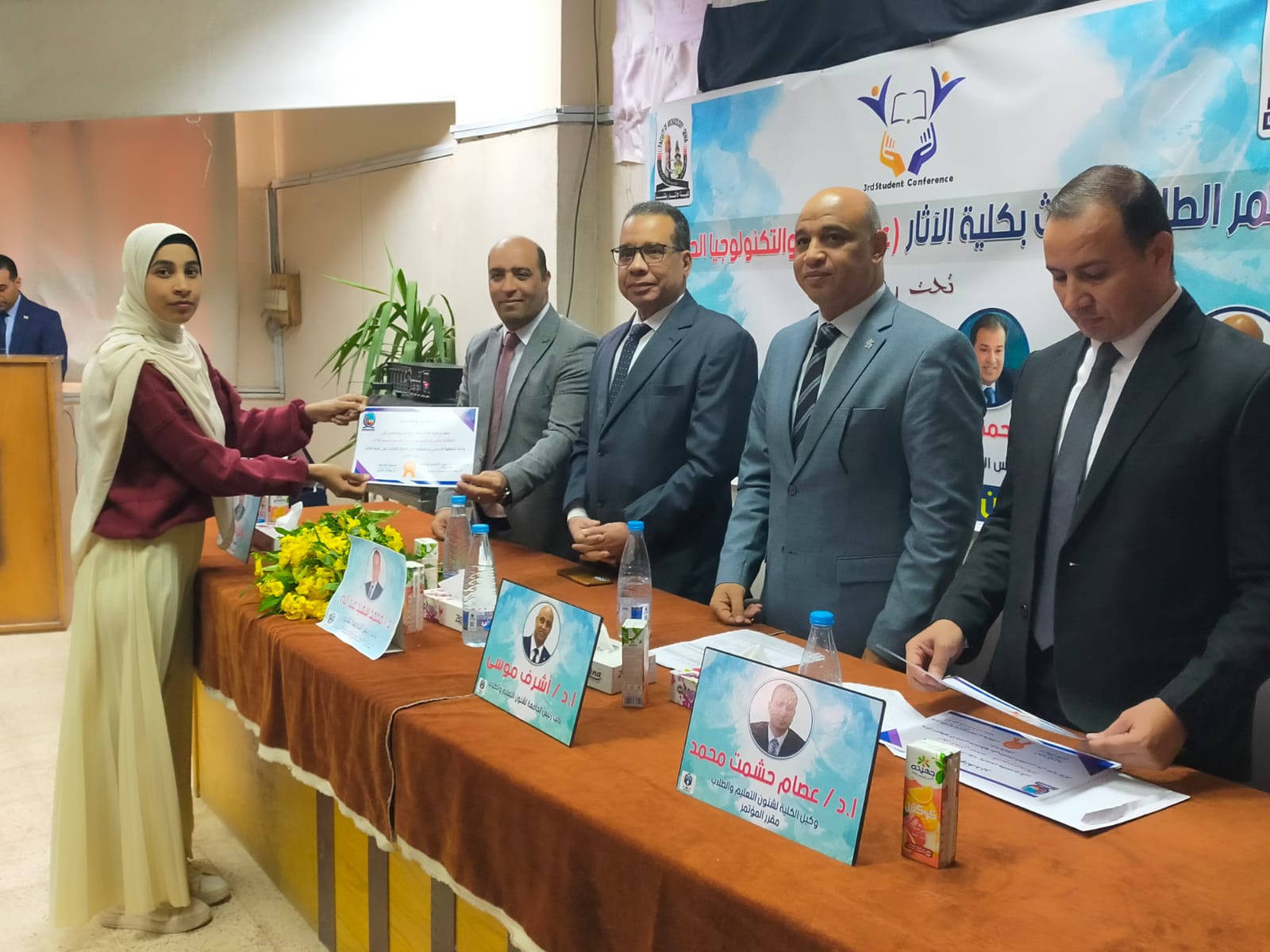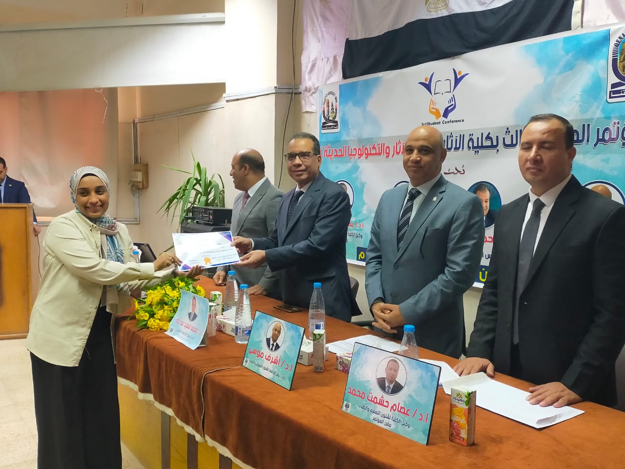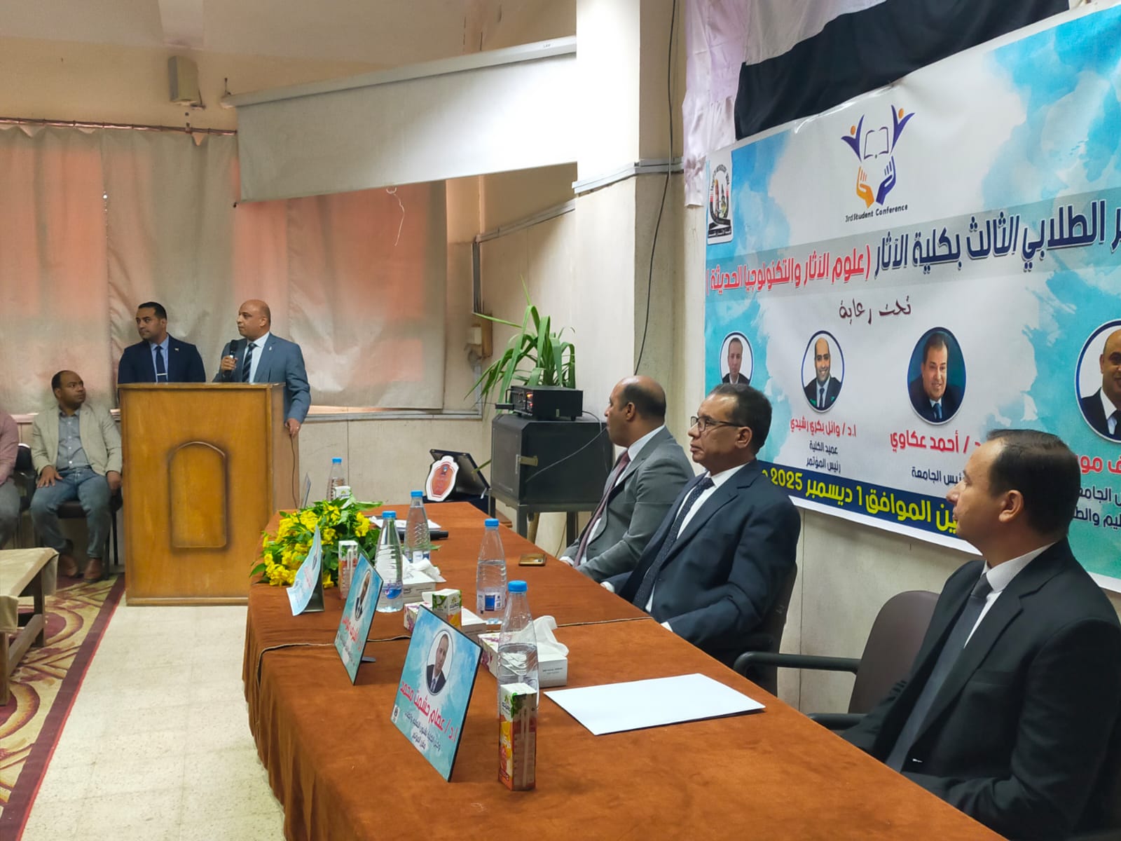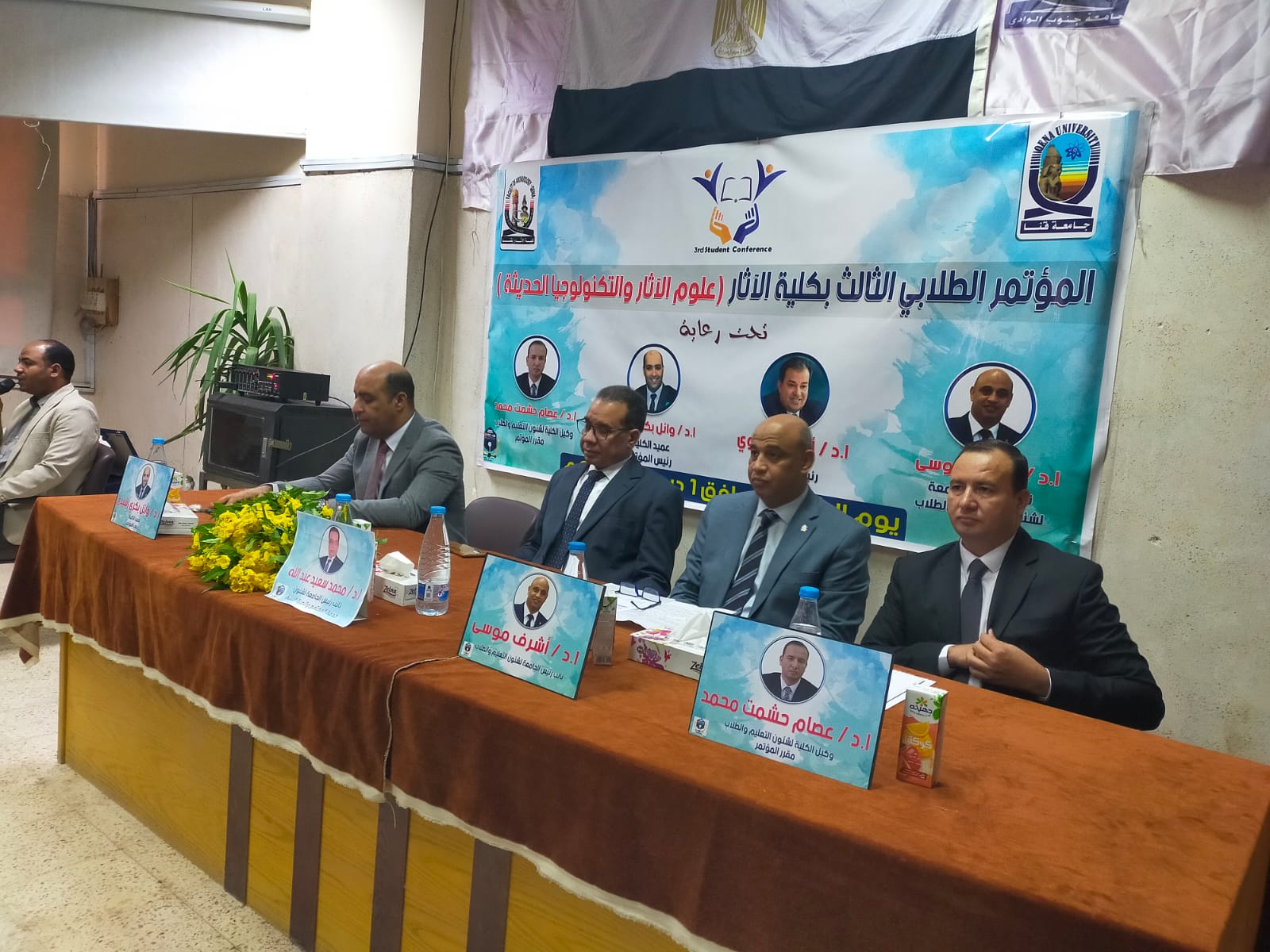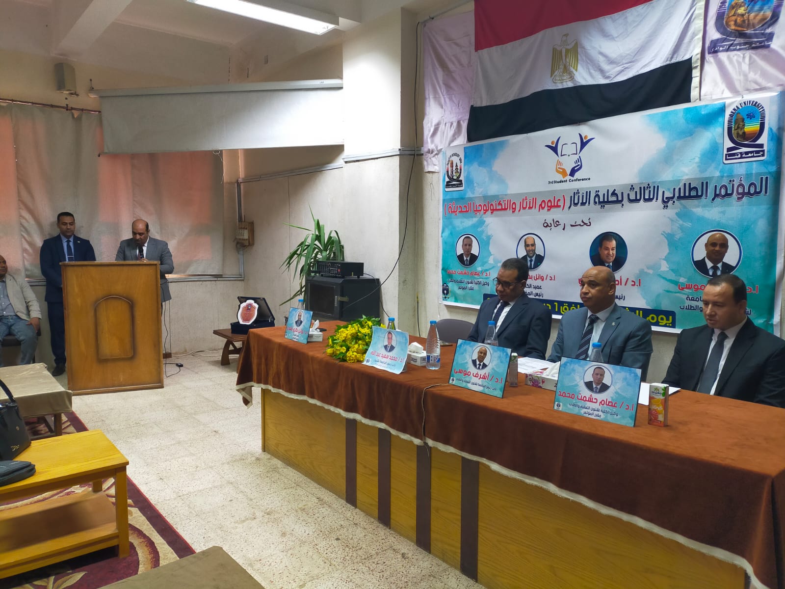 برعاية كريمة من معالي ا د أحمد عكاوي رئيس الجامعة الموقر ومعالي ا د أشرف موسي نائب رئيس الجامعة لشئون التعليم والطلاب والسيد ا د وائل بكري عميد الكلية والسيد اد عصام حشمت وكيل الكلية لشئون التعليم والطلاب انعقد اليوم بمقر الكلية المؤتمر الطلابي الثالث تحت عنوان علوم الآثار والتكنولوجيا الحديثة.