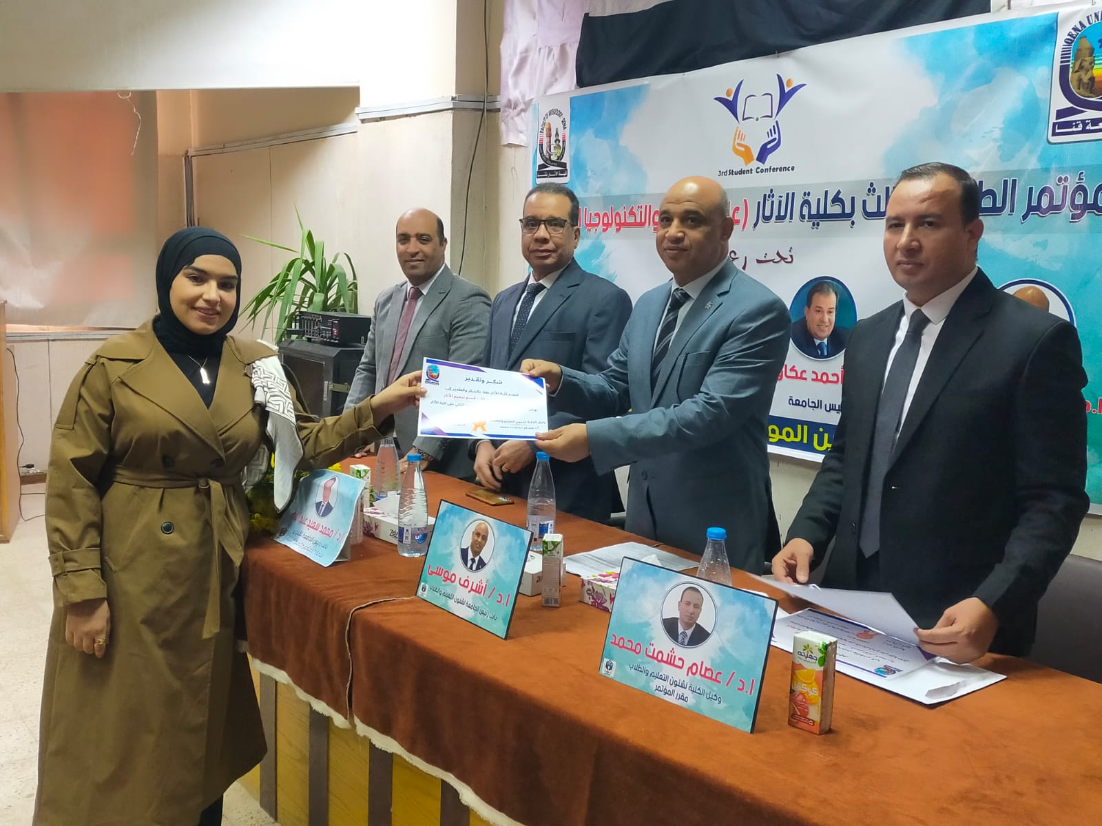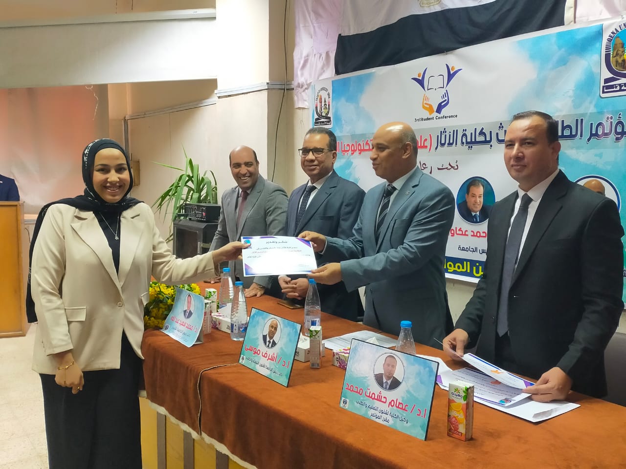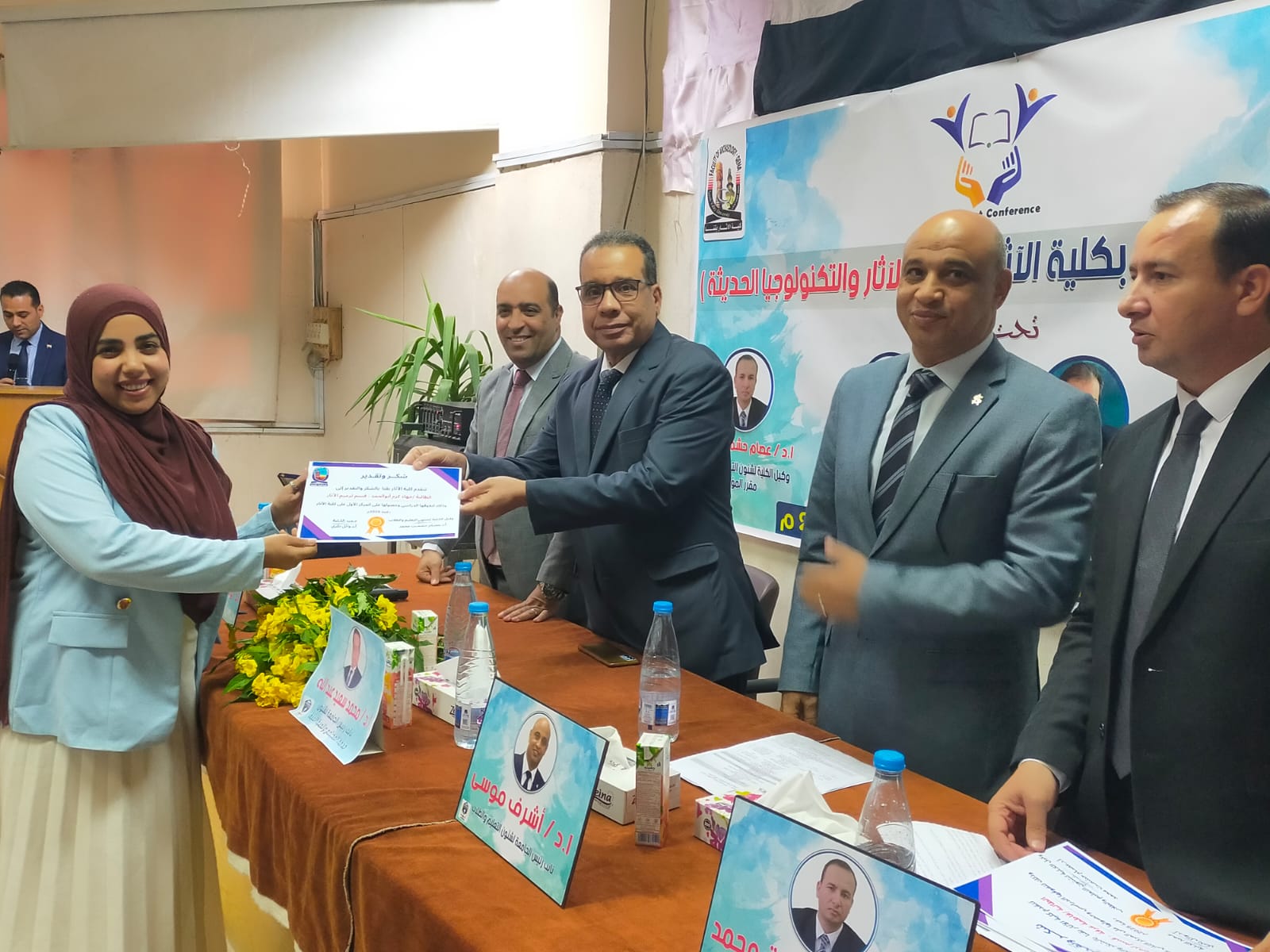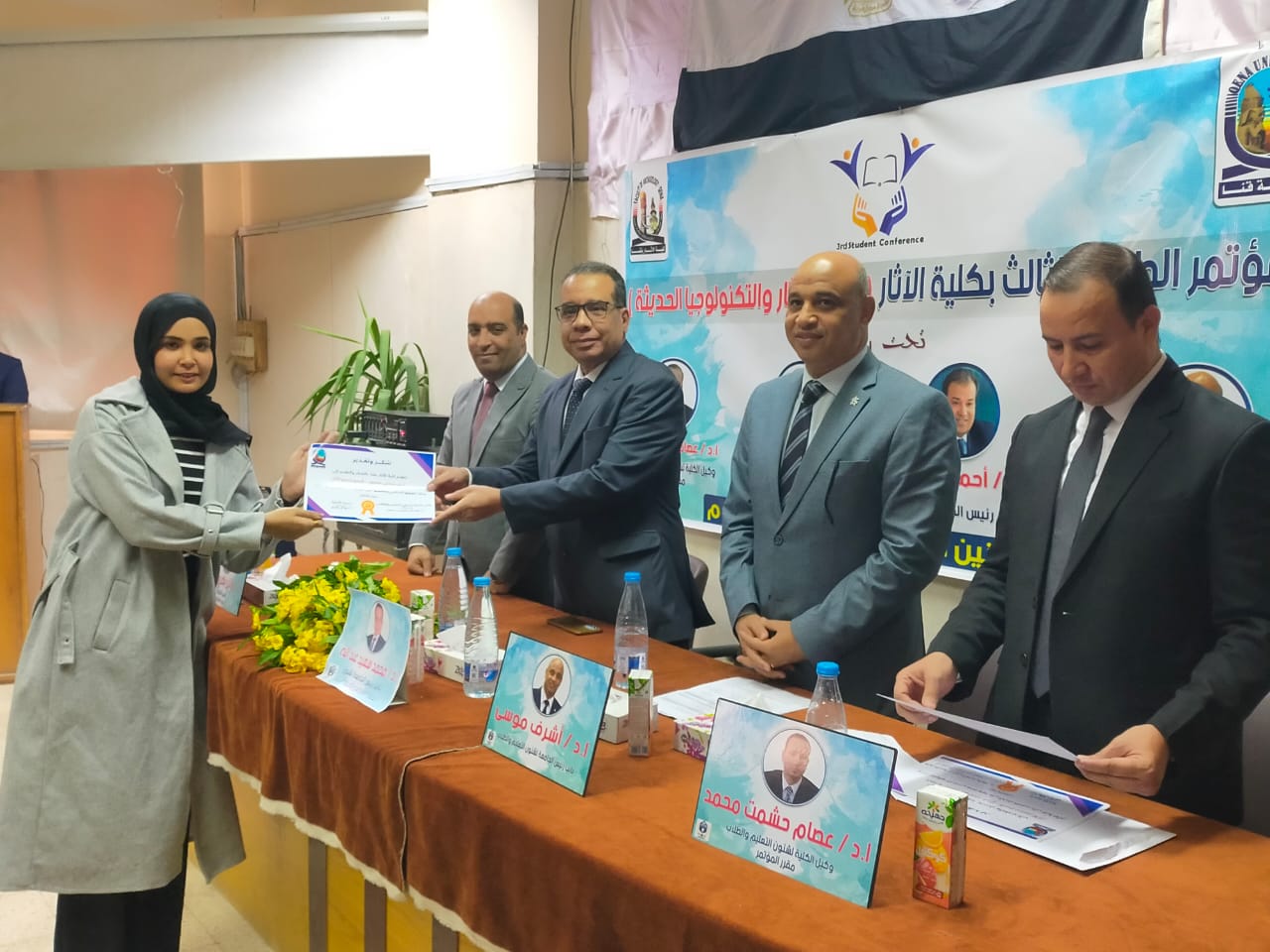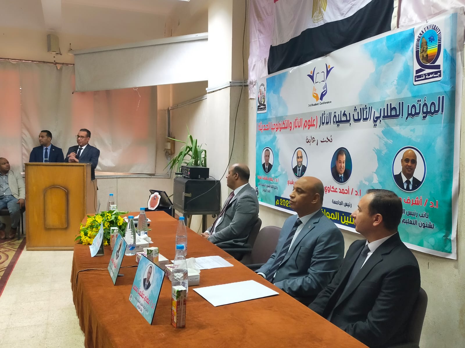 برعاية كريمة من معالي ا د أحمد عكاوي رئيس الجامعة الموقر ومعالي ا د أشرف موسي نائب رئيس الجامعة لشئون التعليم والطلاب والسيد ا د وائل بكري عميد الكلية والسيد اد عصام حشمت وكيل الكلية لشئون التعليم والطلاب انعقد اليوم بمقر الكلية المؤتمر الطلابي الثالث تحت عنوان علوم الآثار والتكنولوجيا الحديثة.