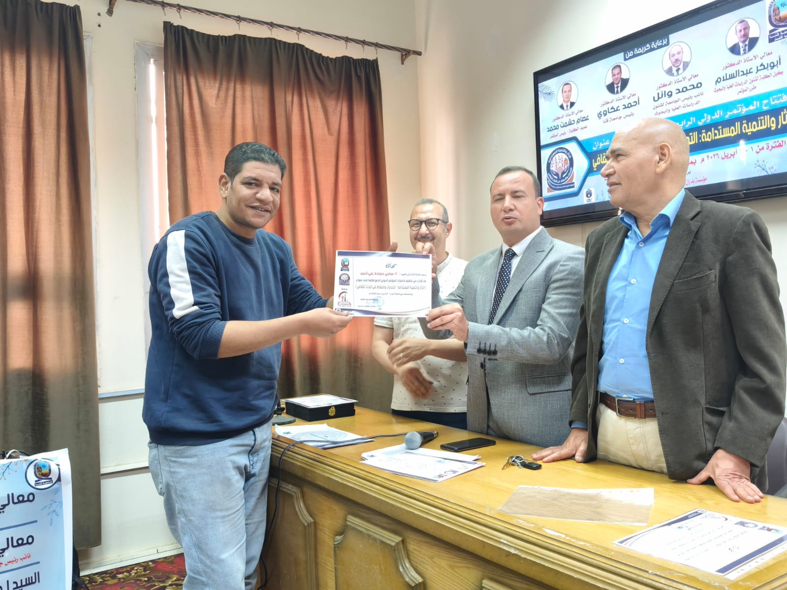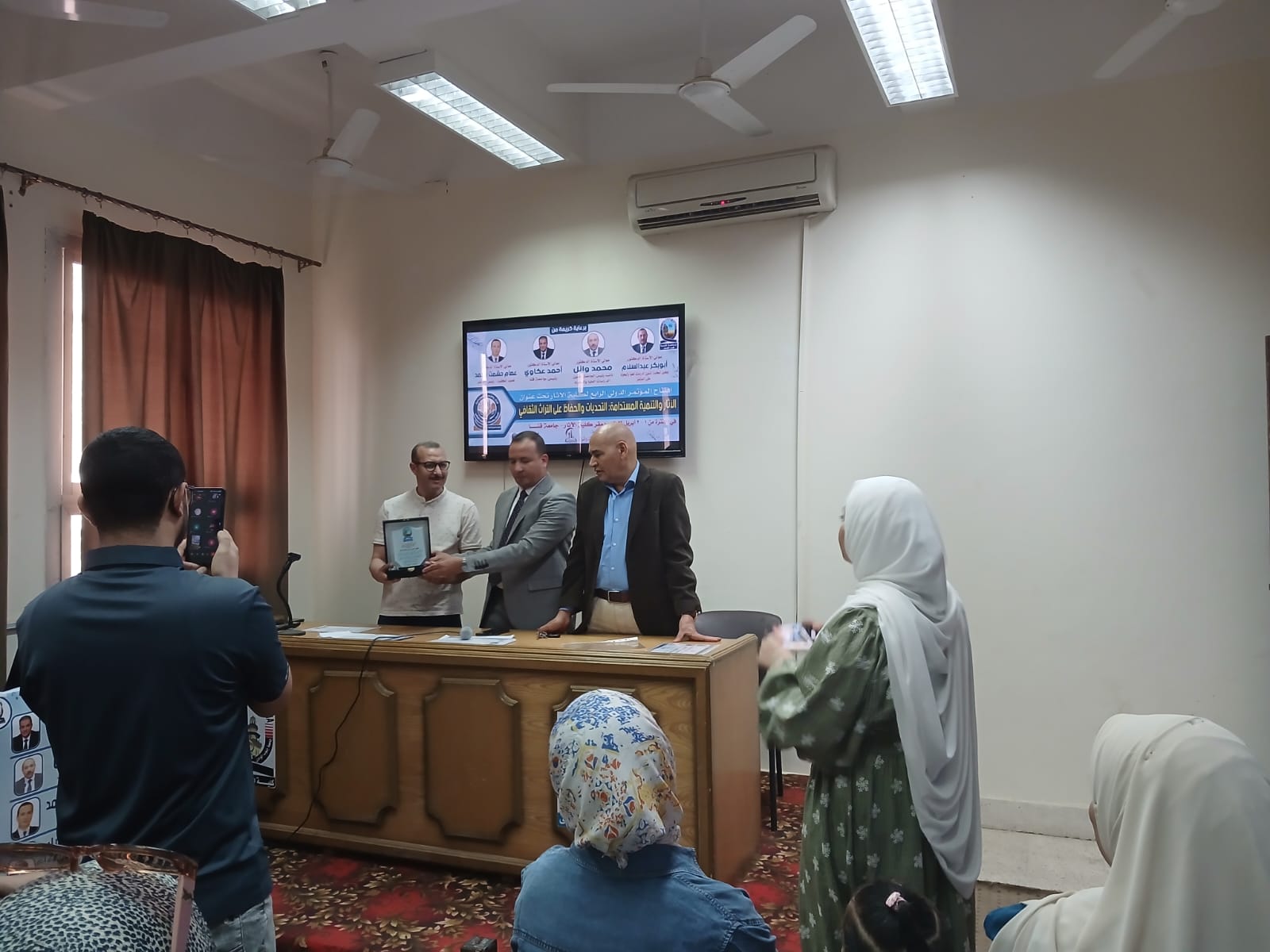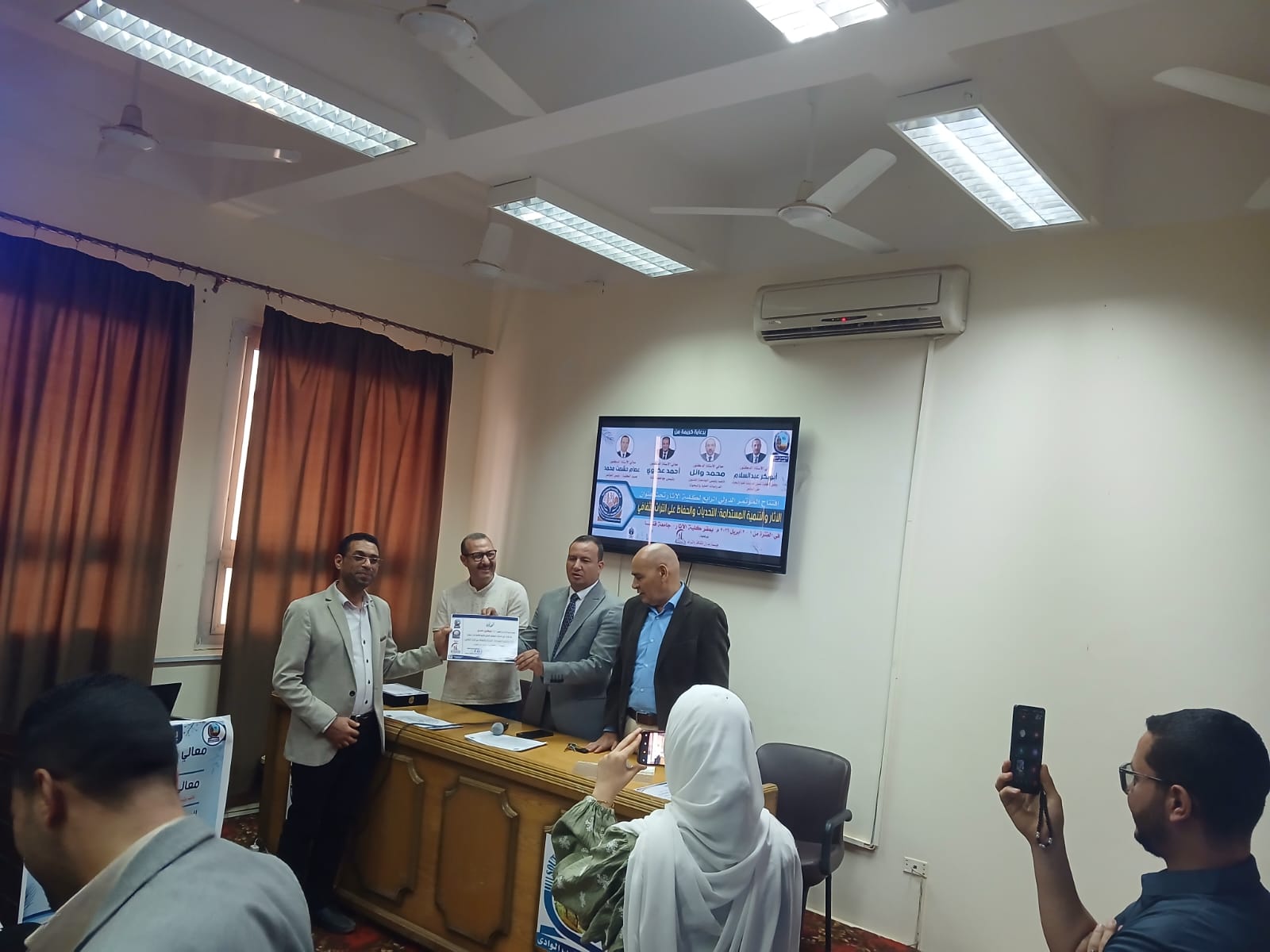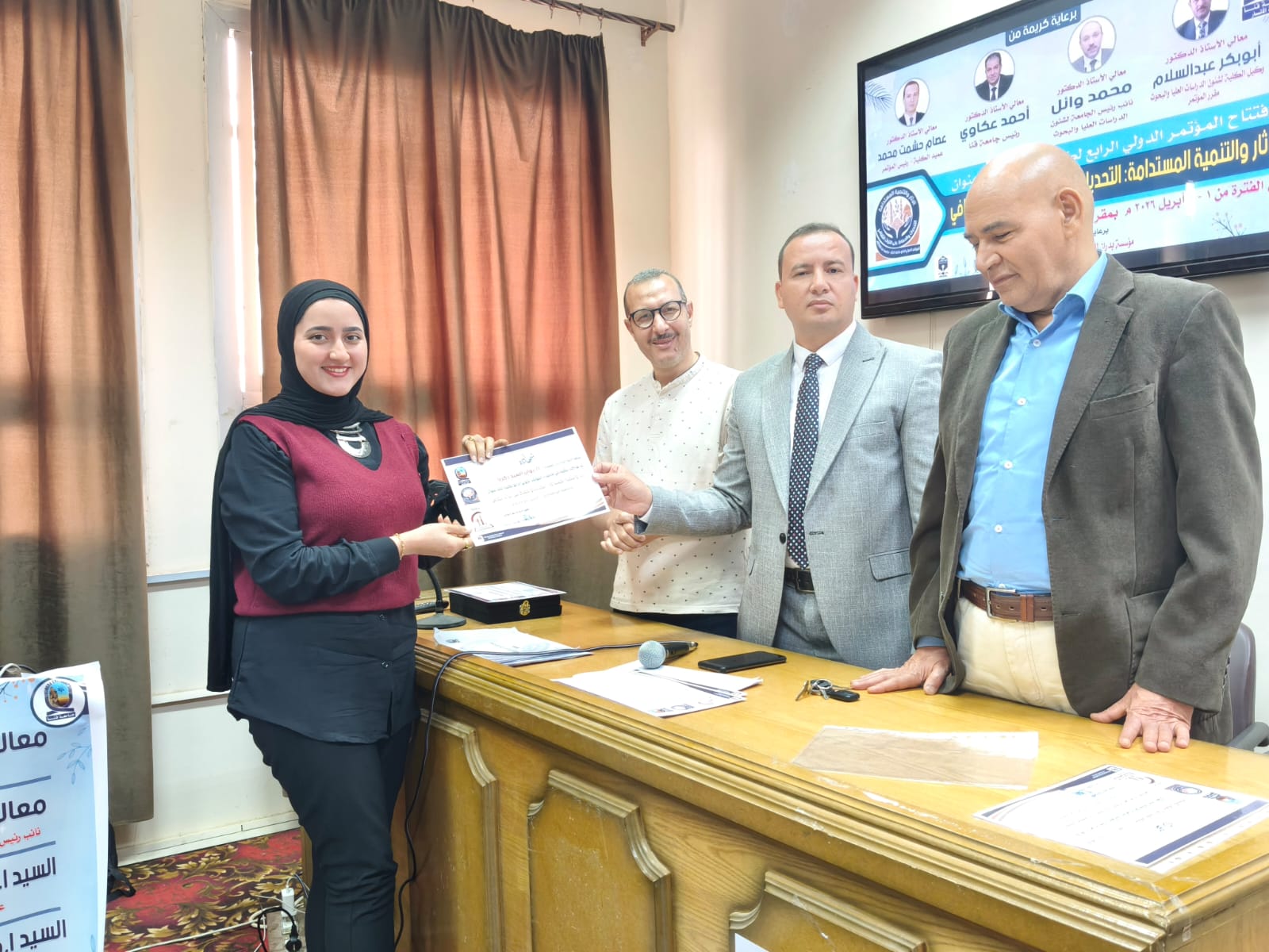 اختتمت يوم الخميس الموافق ٢ أبريل فاعليات الجلسات العلمية للمؤتمر الدولي الرابع لكلية الأثار وفي نهاية المؤتمر تم تكريم أعضاء اللجنة المنظمة ومنح شهادات مشاركة للسادة الباحثين المشاركين في المؤتمر