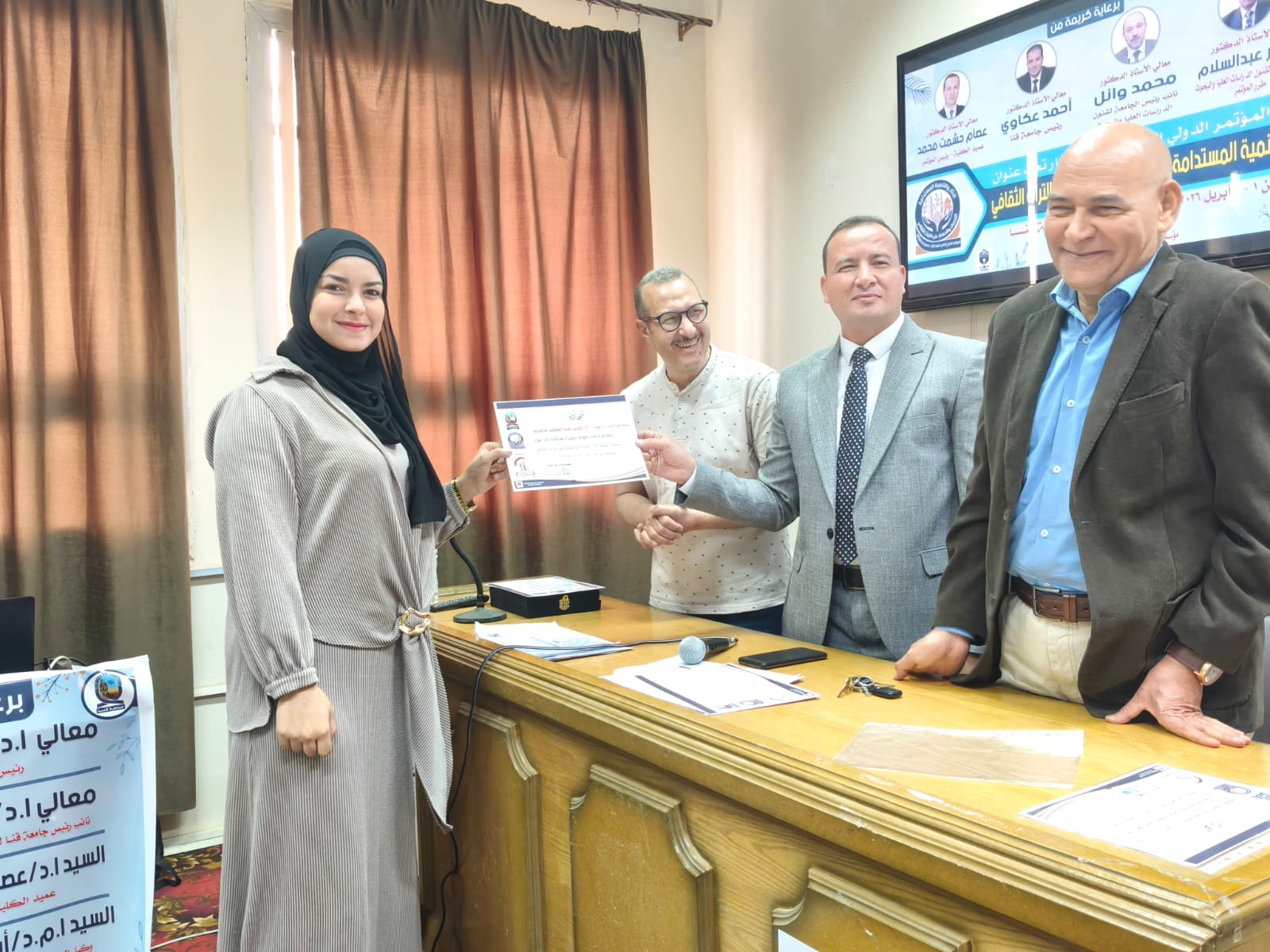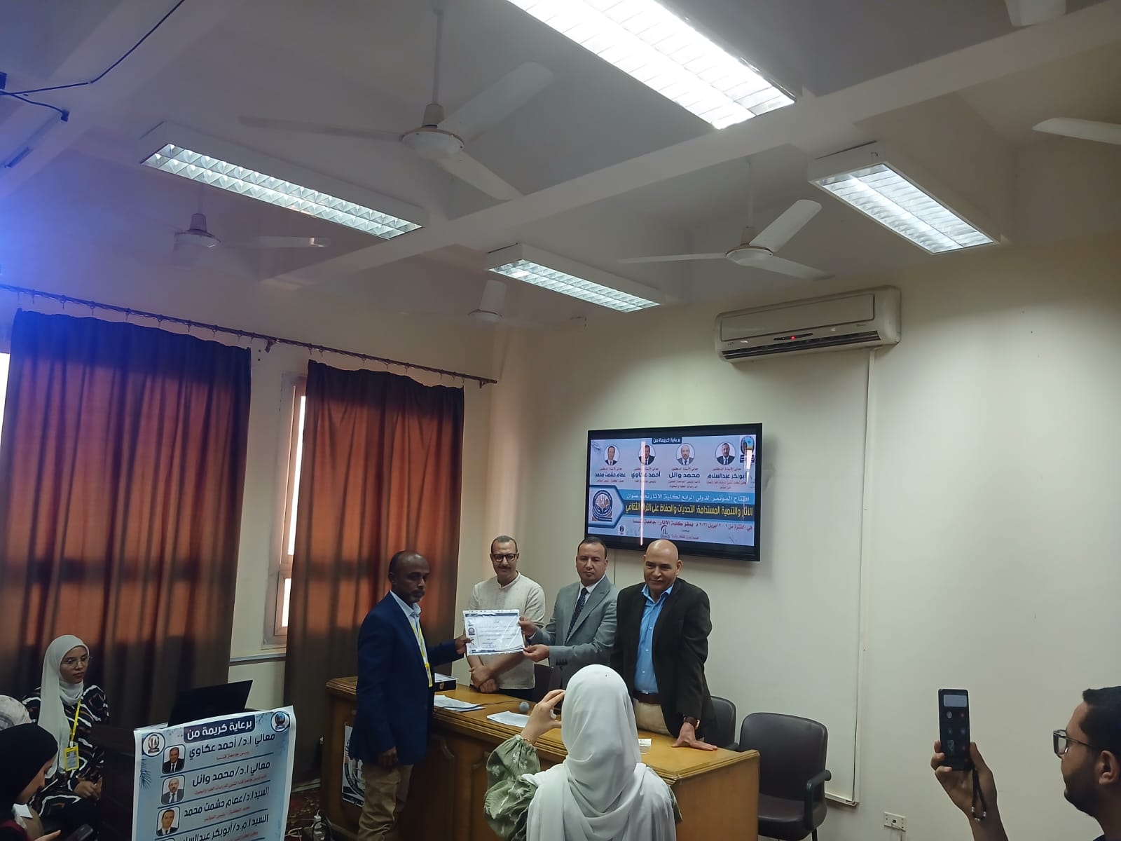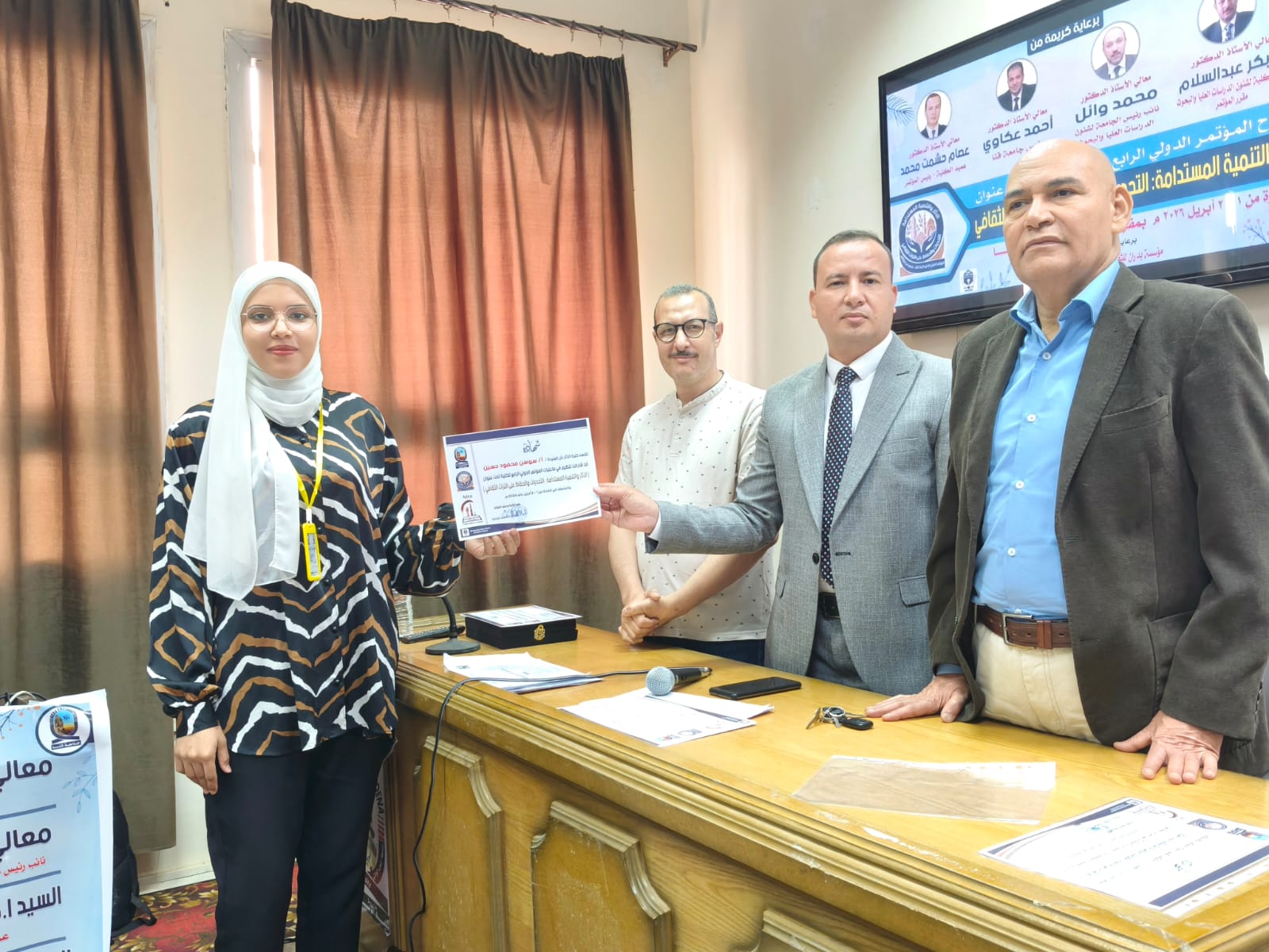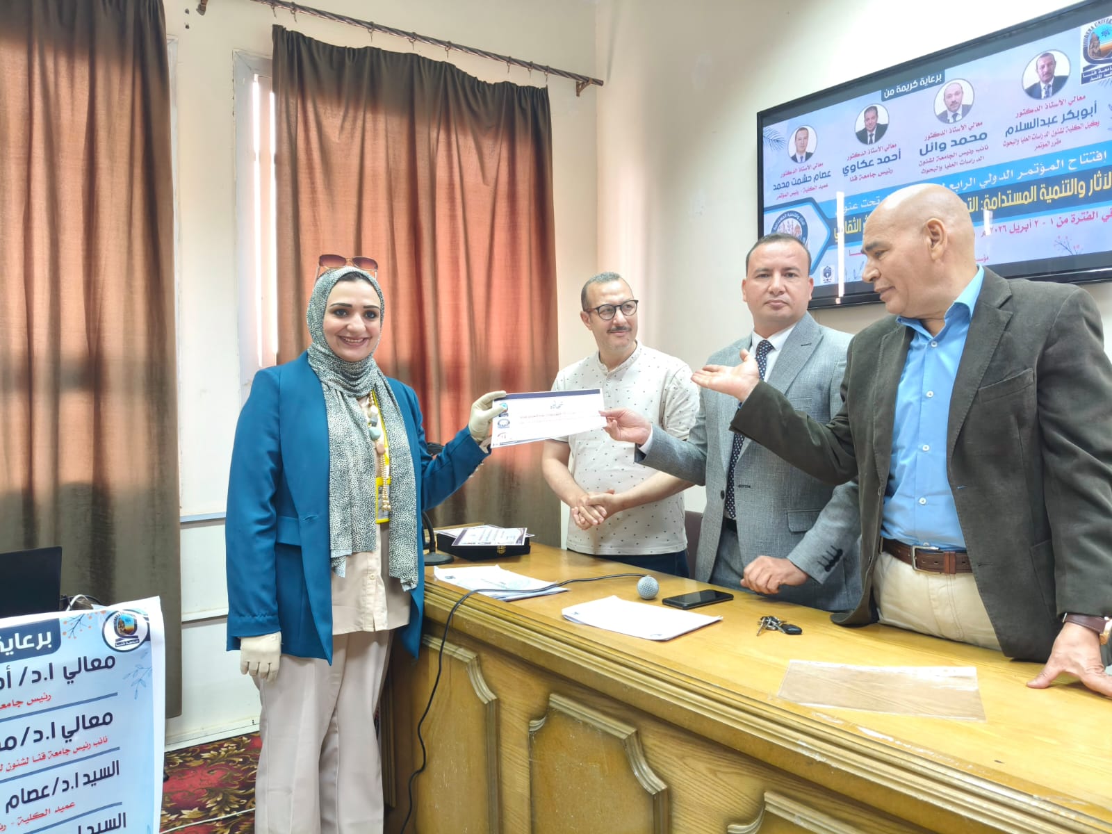 اختتمت يوم الخميس الموافق ٢ أبريل فاعليات الجلسات العلمية للمؤتمر الدولي الرابع لكلية الأثار وفي نهاية المؤتمر تم تكريم أعضاء اللجنة المنظمة ومنح شهادات مشاركة للسادة الباحثين المشاركين في المؤتمر