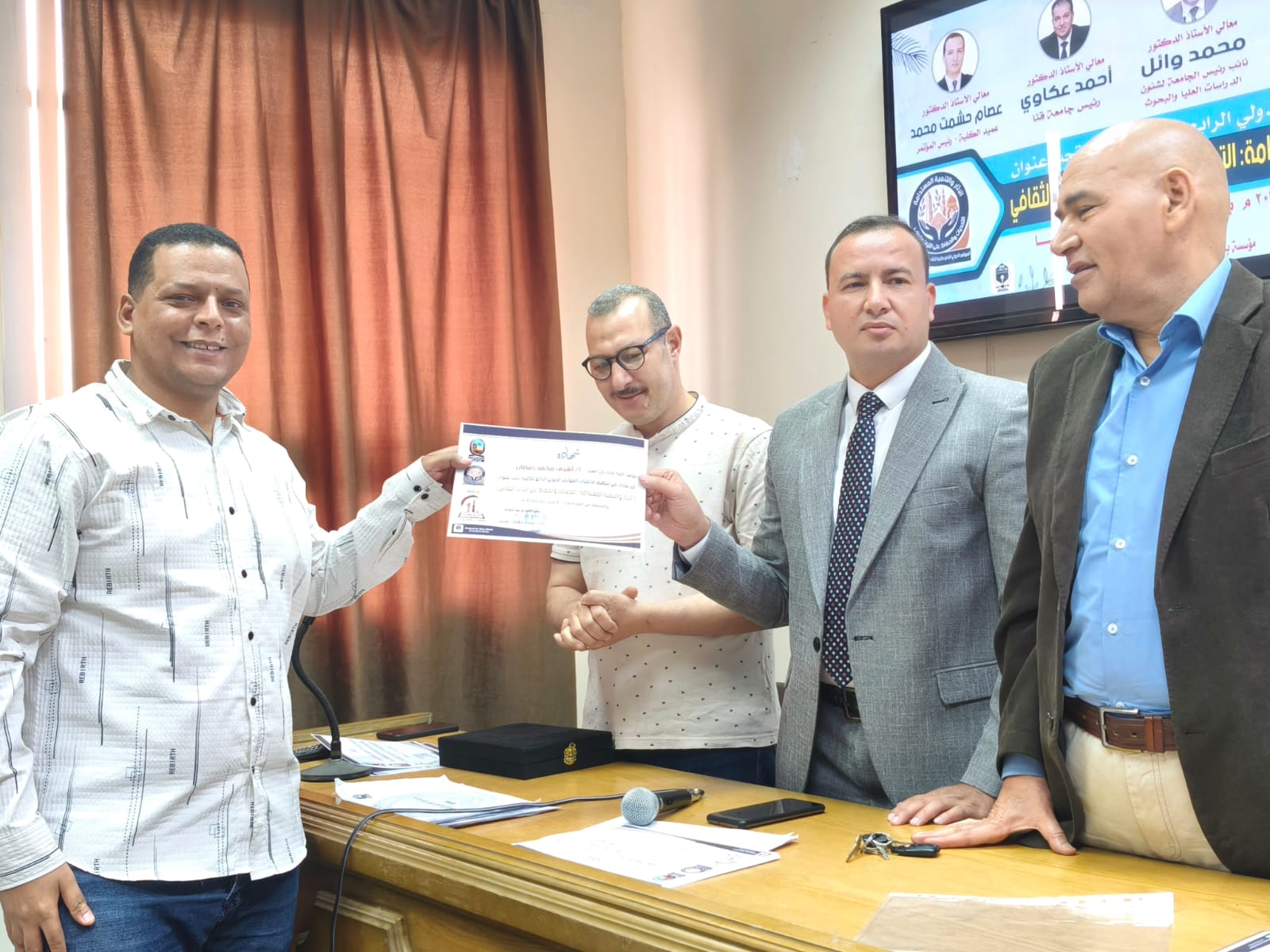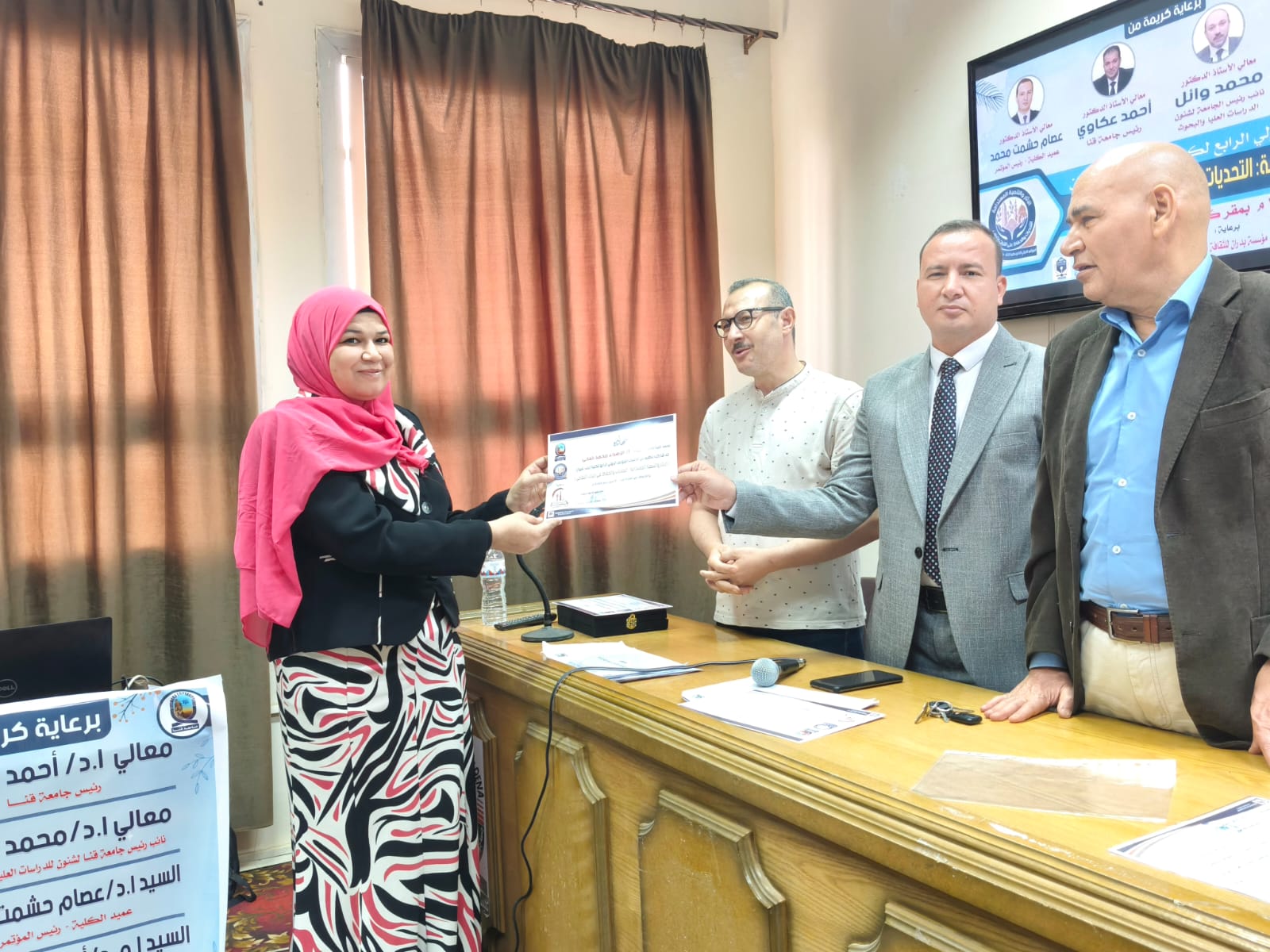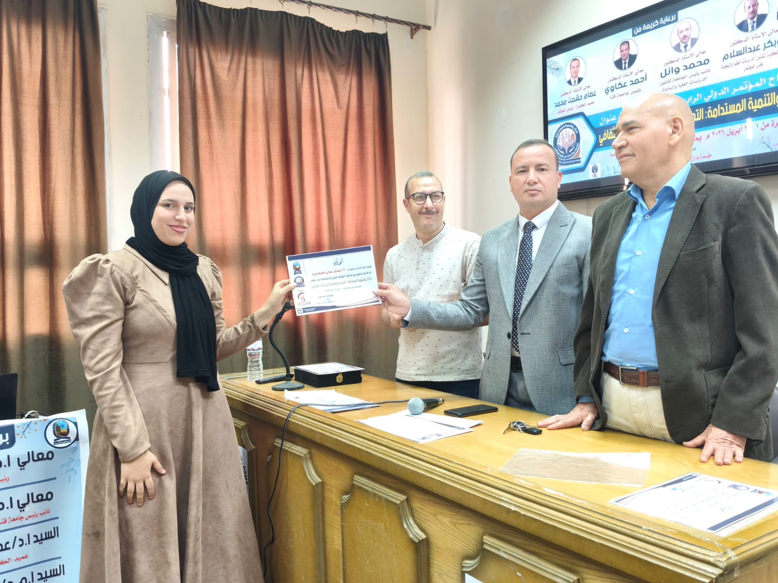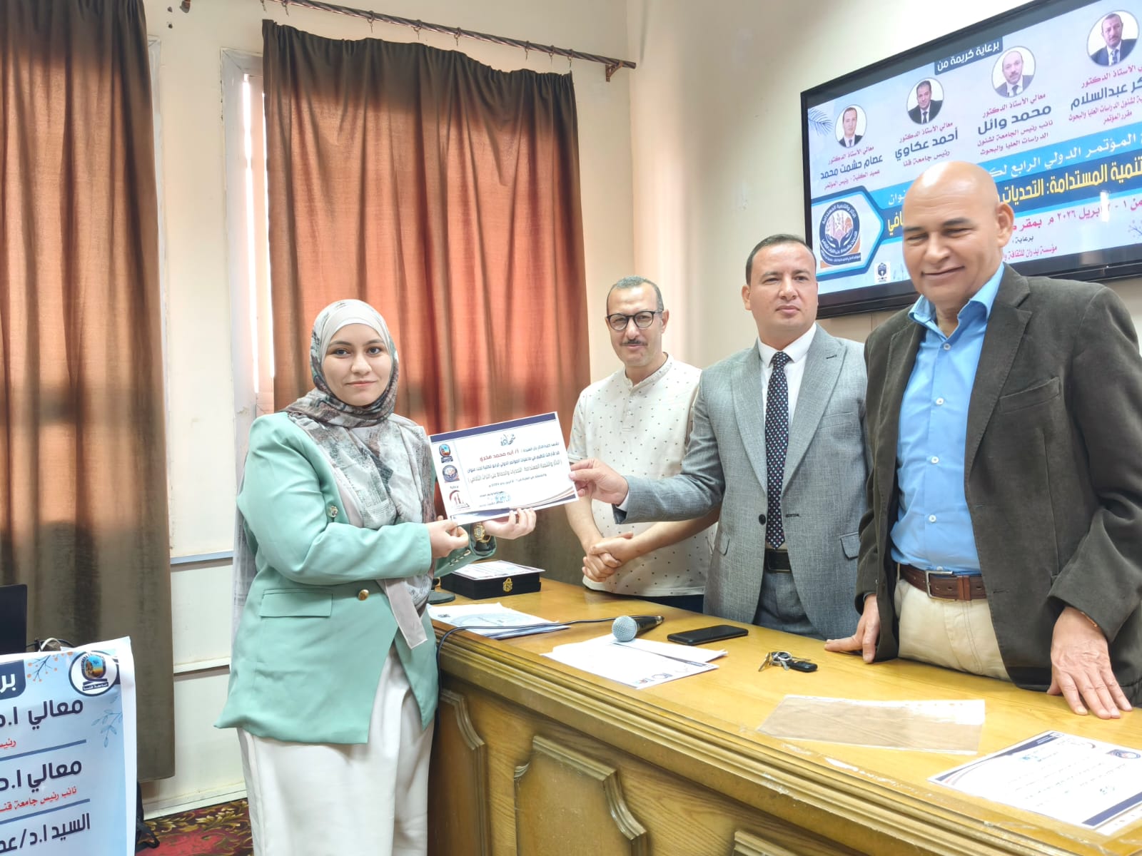 اختتمت يوم الخميس الموافق ٢ أبريل فاعليات الجلسات العلمية للمؤتمر الدولي الرابع لكلية الأثار وفي نهاية المؤتمر تم تكريم أعضاء اللجنة المنظمة ومنح شهادات مشاركة للسادة الباحثين المشاركين في المؤتمر