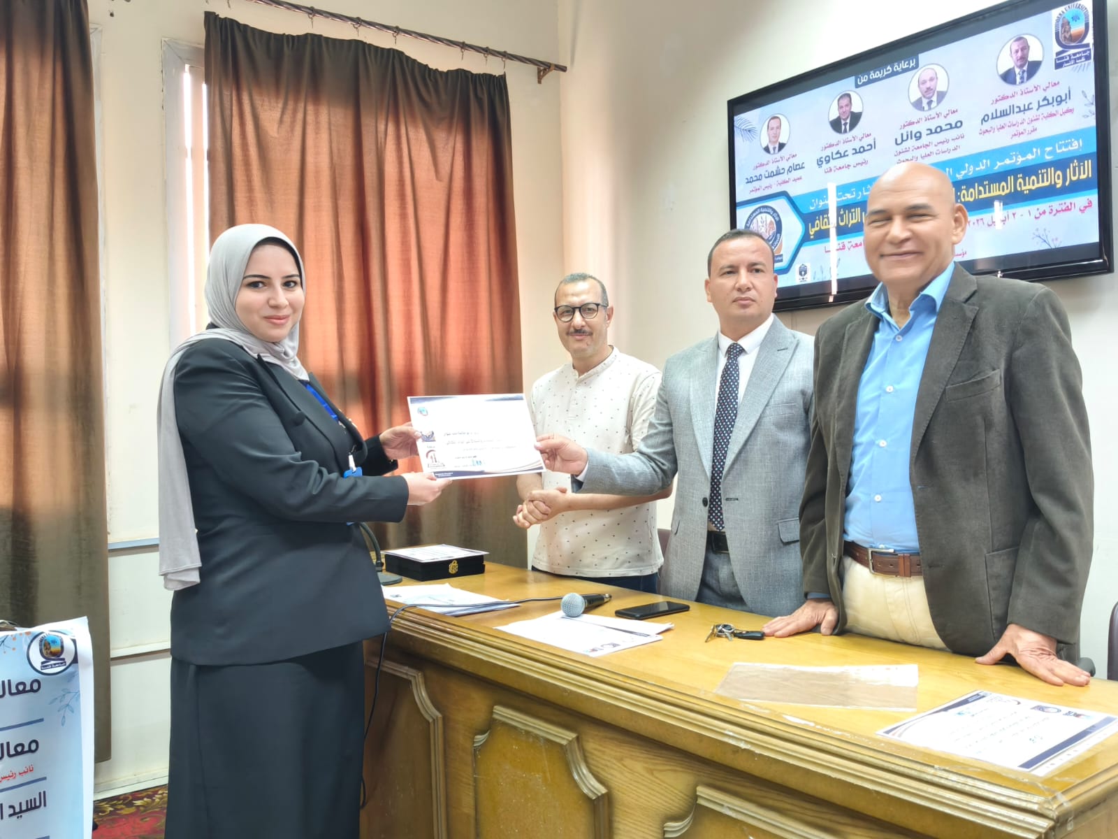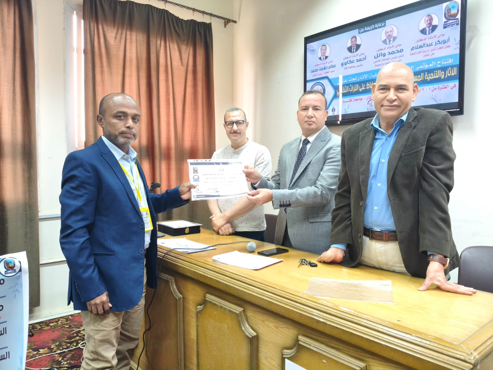 ١- أوصى معالي أ. د. أحمد عكاوي رئيس الجامعة بضرورة حماية الآثار وصون التراث الثقافي، سواء على المستوى المحلي بمحافظة قنا أو على المستوى الوطني في إطار دعم جهود الدولة المصرية للحفاظ على الموروث الحضاري، مشيرا إلى أن الجامعة تضع هذا الملف ضمن أولوياتها العلمية والمجتمعية.