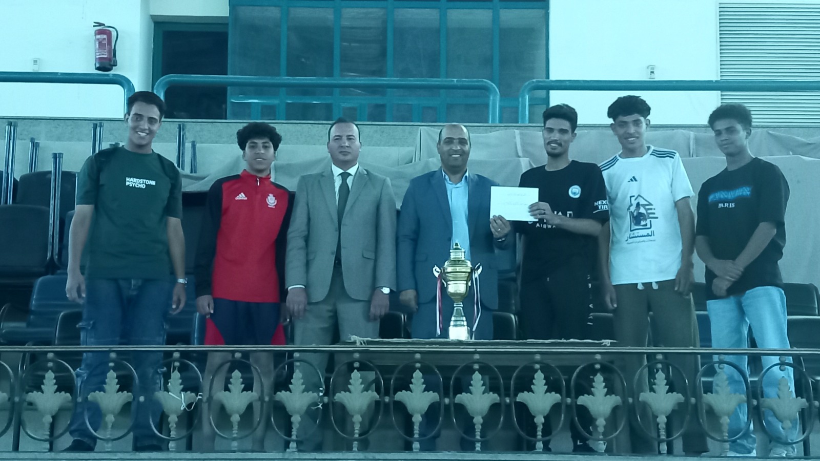برعاية كريمة من معالي اد أحمد عكاوي رئيس الجامعة الموقر ومعالي ا د أشرف موسي نائب رئيس الجامعة لشئون التعليم والطلاب والسيد ا د وائل بكري عميد الكلية والسيد ا د عصام حشمت وكيل الكلية عقدت كلية الآثار دوري لكرة القدم لطلاب الكلية وذلك بالصالة المغطاة بالجامعة وقد تنافس في فاعليات هذه المسابقة ست فرق مختلفة ياتي ذلك في اطار حرص الكلية على خلق مناخ يسوده المحبة والاخلاق الرياضية بين طلاب الكلية وتم تحديد المركزين الأول والثاني وتوزيع بعض الجوائز على الفائزين من مكافأت مالية للتحفيز
