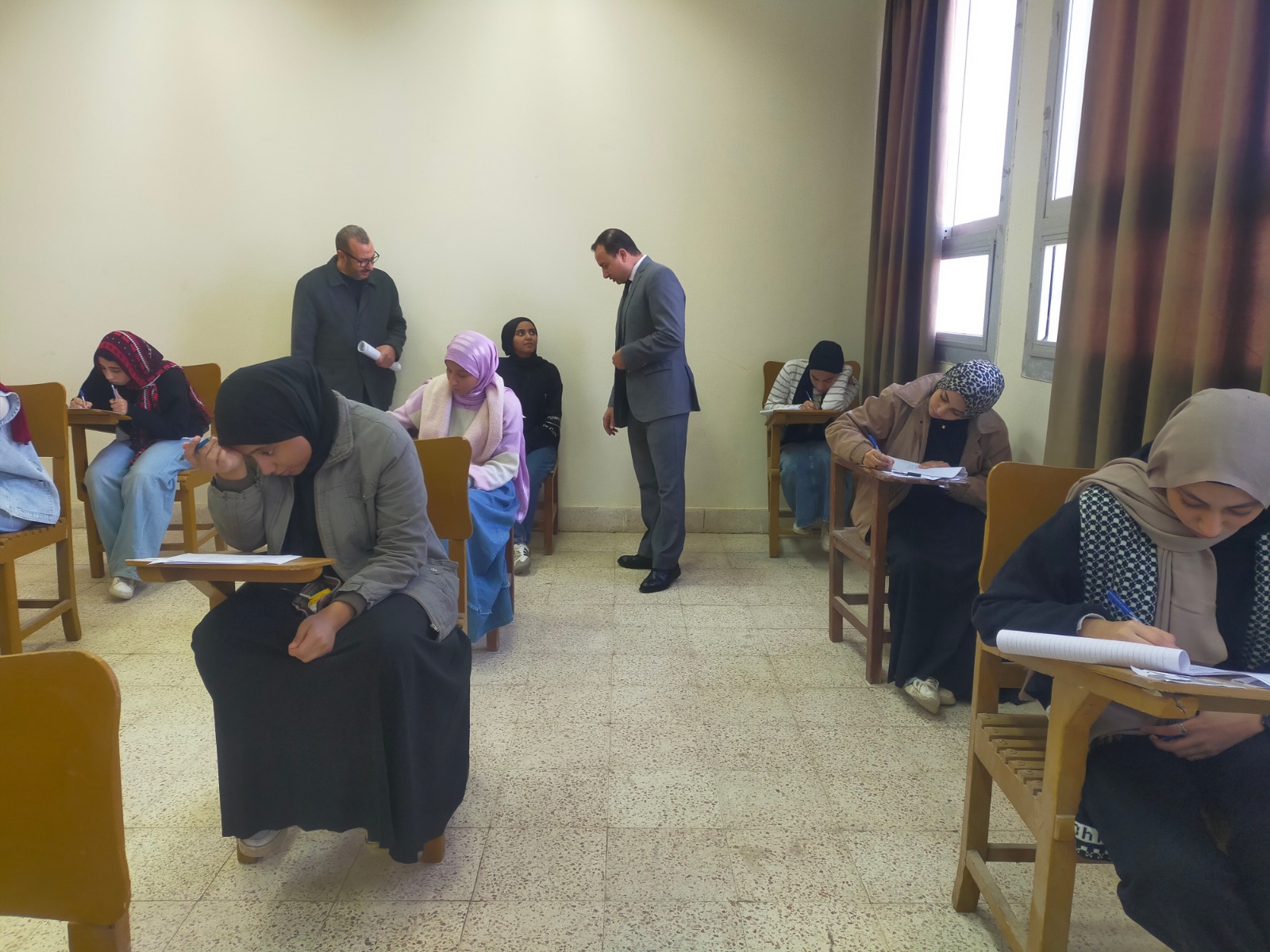 برعاية معالي أ. د. أحمد عكاوي رئيس الجامعة ومعالي أ. د. أشرف موسى نائب رئيس الجامعة لشئون التعليم والطلاب وفي إطار المتابعة المستمرة لأعمال الامتحانات بالكلية قام أ. د. عصام حشمت محمد عميد الكلية يرافقه السيد أ. م. د. أبوبكر عبدالسلام وكيل الكلية لشئون الدراسات العليا والبحوث بتفقد لجان الامتحانات للفرق المختلفة بالكلية للإطمئنان على انضباط اللجان وسير أعمال الامتحانات بشكل منتظم.