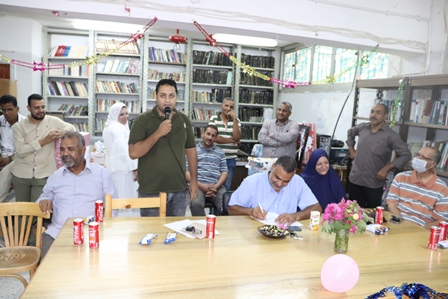 نظمت كلية التربية بقنا اليوم الخميس الموافق ١٧ / ٩ / ٢٠٢٠ م احتفالية لتكريم الزميلة الفاضلة والخلوقة الحاجة / فاطمة عكاشة الموظفة بكلية التربية بقنا لبلوغها السن القانونية للتقاعد وقد حضر الحفل السيد أ.د/ محسوب الضوي عميد الكلية والسادة الوكلاء ولفيف من السادة أعضاء هيئة التدريس والمعاونون والسادة العاملون بالكلية وذلك تحت اشراف الاستاذ / علي السيد حلمي شرقاوى مدير المكتبة بكلية التربية بقنا مع خالص الشكر والتقدير للحاجة / فاطمة عكاشة