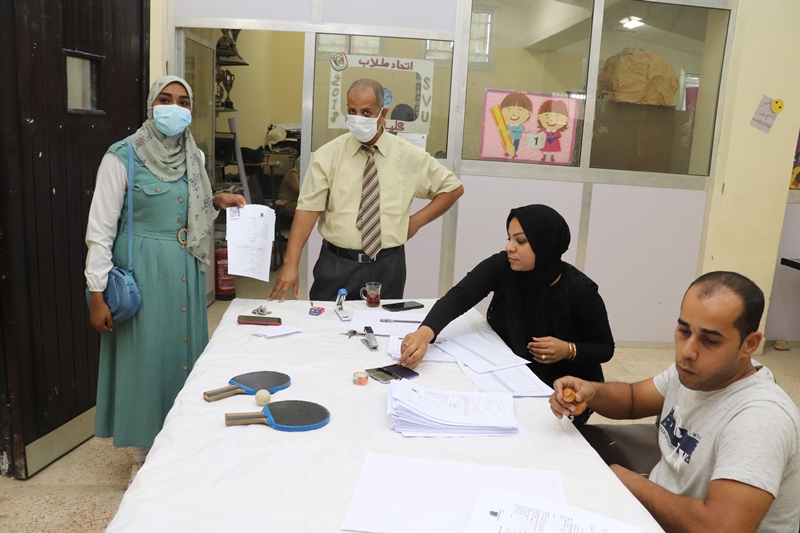 حيث أطمئن سيادته على  حسن سير العملية الأنتخابية التى تتم للطلاب المتقدمين والالتزام بتطبيق الاجراءات الاحترازية لمجابهة فيروس كورونا المستجد