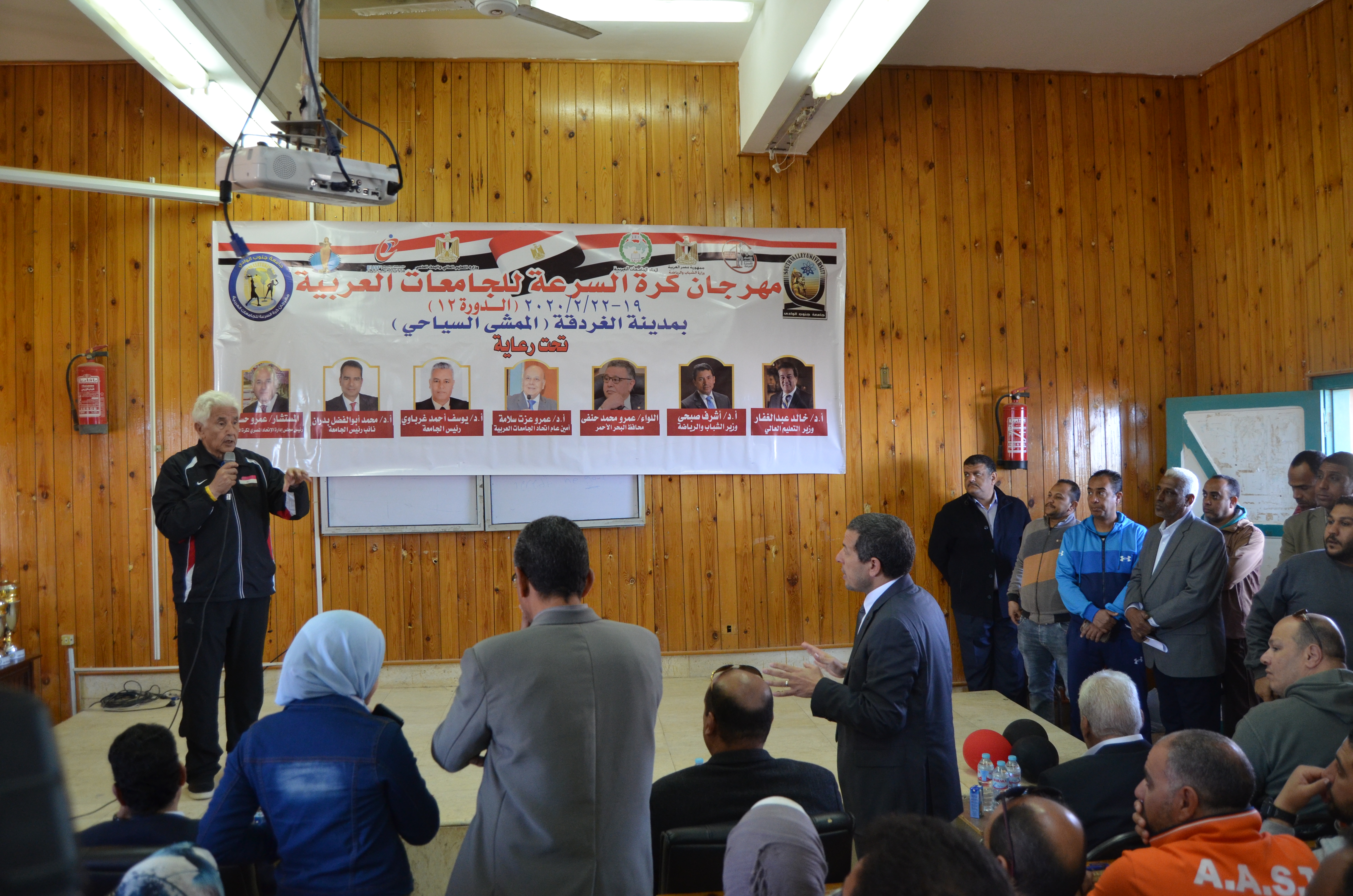والمستشار عمرو حسين رئيس مجلس إدارة اتحاد المصرى لكرة السرعة والدكتور صبحى حسانين نائب رئيس الاتحاد المصرى الرياضى للجامعات والدكتور هشام الجيوشى سكرتير عام الاتحاد.