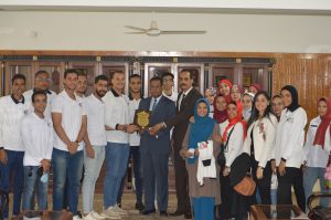 قدم الدكتور عباس مصطفى عباس رائد أسرة طلاب من أجل مصر والطالب كريم ماهر والطالب فؤاد الشريف منسقى الأسرة بالكلية.