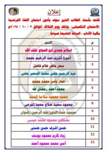 جدول امتحانات الفصل الدراسى الأولى 2023/2022م