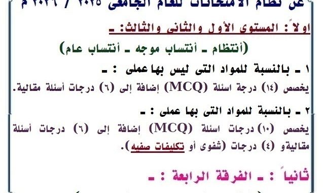 • جدول امتحانات الفصل الدراسى الأولى 2023/2022م