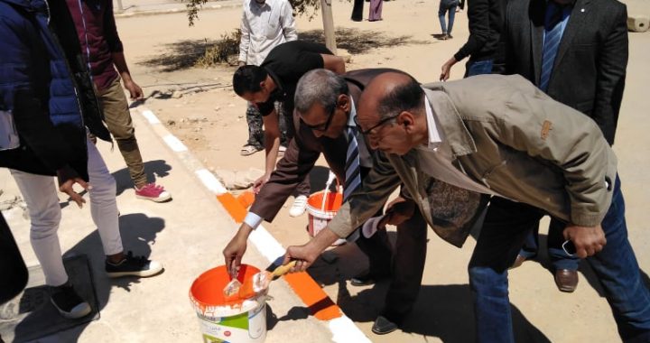 حيث قام الطلاب بتجميل منشأت الكلية وكذلك أعمال دهانات وتجميل للأرصفة والبندورات ، وعمل لوحات إرشادية وتوزيع سلات للقمامة مثبته فى أماكن تواجد الطلاب.