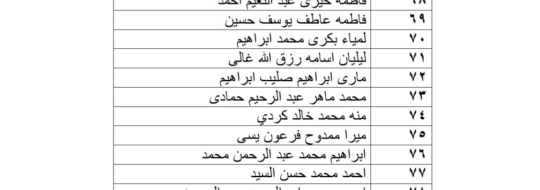 الطلاب الأوائل، يتقدمهم عمرو خالد عبدالوهاب (أول الجامعة – كلية الإعلام وتكنولوجيا الاتصال)، وفاطمة حسني (كلية التربية)، ورفيق عبد الهادي (كلية الهندسة).