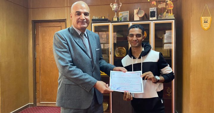 الطالب عمرو خالد عبدالوهاب المقيد بالفرقة الرابعة قسم الإعلام الإلكتروني لحصوله على المركز الثالت في مسابقة ” الطالب المثالي ” علي مستوي الجمهورية في ملتقي G-FORCE للجامعات المصرية الذي استضافته جامعة الجلالة.