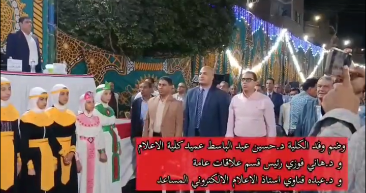 تحت رعاية اللواء الدكتور مصطفى الببلاوي محافظ قنا وبحضور الدكتورة جيهان زكي وزيرة الثقافة، والدكتور حازم عمر نائب محافظ قنا، والكاتب الصحفي مصطفى بكري عضو مجلس النواب، شارك وفد من كلية الإعلام جامعة قنا مساء الأحد الموافق 19 أبريل 2026م في فعاليات المهرجان الثقافي والفني احتفالًا بـ”يوم اليتيم”، والذي نظمته جمعية رعاية الأيتام