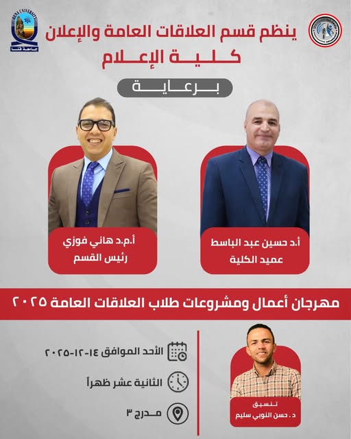 تحت رعاية الأستاذ الدكتور أحمد عكاوي – رئيس جامعة قنا، والأستاذ الدكتور والأستاذ الدكتور محمد وائل نائب رئيس الجامعة للدراسات العليا والبحوث، والأستاذ الدكتور حسين عبدالباسط، عميد كلية الإعلام وتكنولوجيا […]