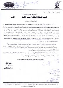 •  العنوان :كلية الطب، جامعة جنوب الوادي ، قنا، مصر.