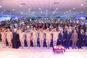 وقدم قائد قوات الدفاع الشعبى والعسكرى التحية لأرواح شهداء مصر الذين بذلوا أغلى ما لديهم لننعم فى بيوتنا وشوارعنا وبين اهلنا بالأمن والأمان مؤكدا حرص القيادة السياسية والقوات المسلحة على تخليد ذكراهم وتوفير كافة سبل الرعاية لأسرهم وذويهم تقديرا لدماءهم الطاهرة التى روت تراب مصر مشيدا بما تم تقديمه فى هذه الندوة من فقرات ابداعية وفنية متنوعة مؤكدا ان الهدف من هذه الندوات هو مجابهة الفكر بالفكر وتحصين الشباب ضد الانسياق وراء الشائعات والاكاذيب ولا سبيل الى ذلك الا بالوعى .