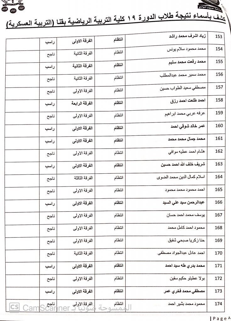 نتيجة طلاب تربية رياضية الدورة (19) تربية عسكرية