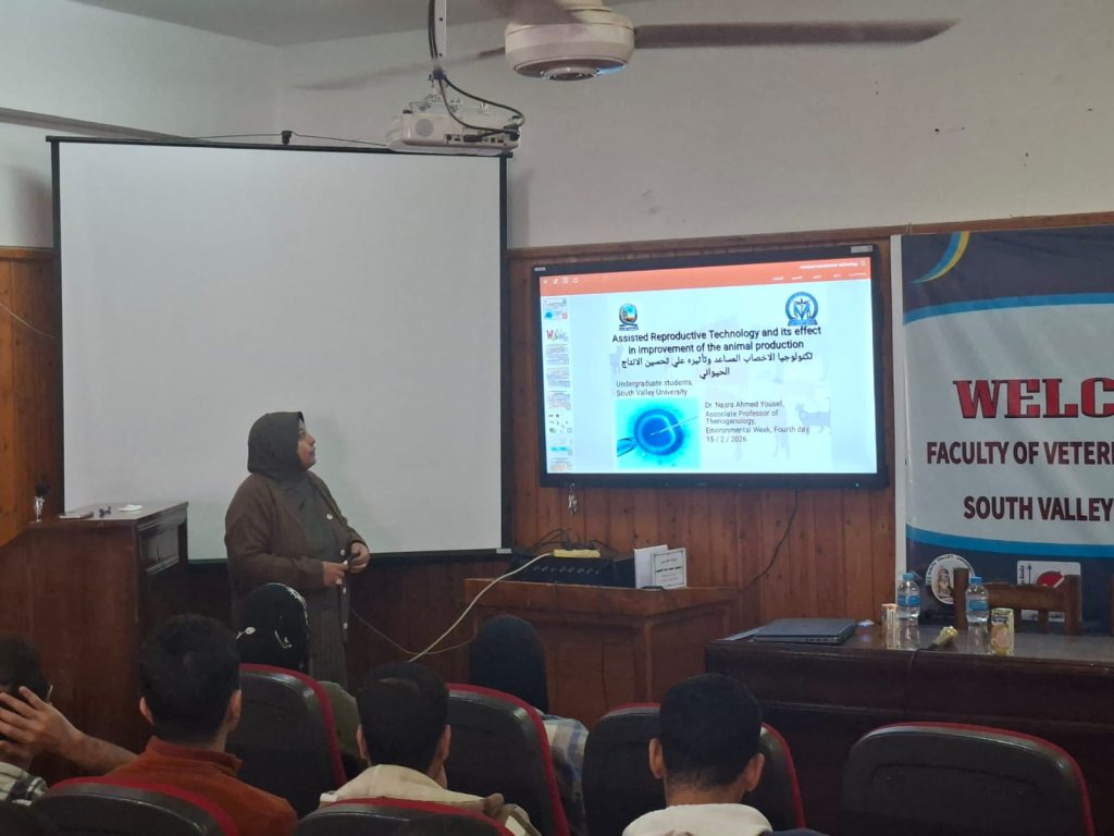 تحت عنوان “تكنولوجيا الاخصاب المساعد وتأثيره علي تحسين الإنتاج الحيواني” حاضر بها ا.م.د/ نصرة احمد محمد بقسم الولادة دارت الندوة حول أهمية الاخصاب المساعد وهي أداة حيوية لتحسين الكفاءة التناسلية والوراثية وتساهم في زيادة الإنتاج الحيواني من لحوم والبان من خلال نشر الصفات الوراثية المتميزة بسرعة وزيادة معدلات الحمل لتفوق المعدلات الطبيعية مما يؤدي إلى زيادة ربحية المزارع.وان عدم الكفاءة التناسلية من أهم الأسباب لخسارة الاقتصاد في الصناعات الحيوانية في العالم كله. لمواجهة احتياجات من الإنتاج الحيواني فعلينا أن نستخدم كل اصدارات تكنولوجيا الاخصاب المساعد من تلقيح اصطناعي ،اخصاب معملي ،حقن مجهري وتجميد البويضات والاجنة لكي تساعد علي تحسين الصفات الوراثية المختلفة .