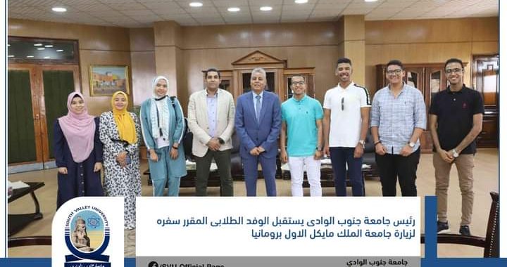 Dans le cadre d’une coopération entre l’Université du Sud de la Vallée et l’Université du Roi Michael Roumanie, Dr. Youssef Gharbawy, recteur de l’Université, a reçu la délégation étudiante qui voyagera à l’Université King Michael I de Roumanie.